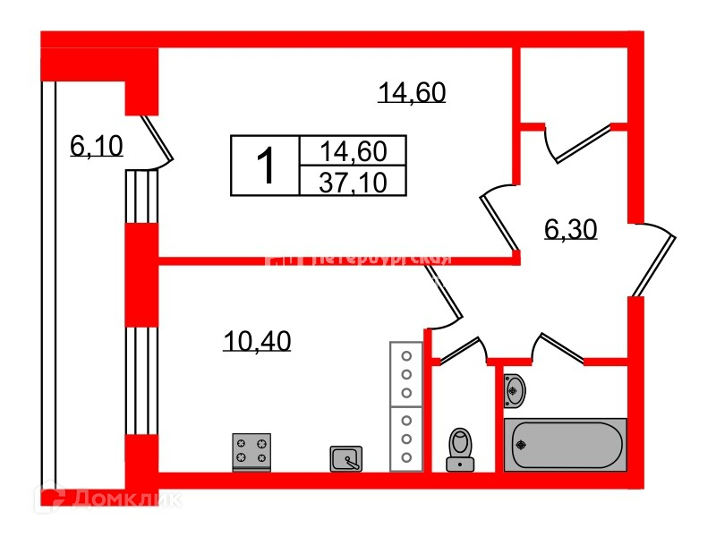 Общая площадь 37.1 м2