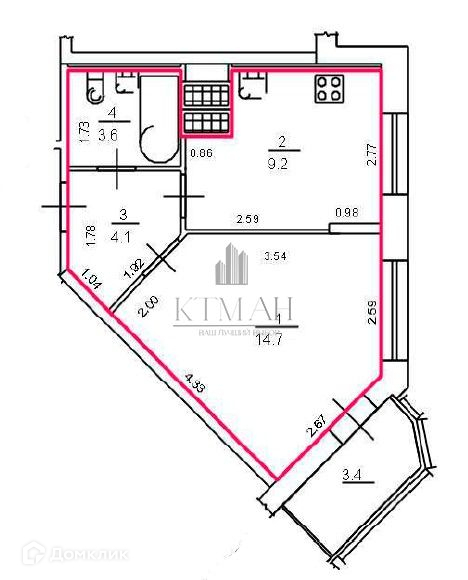 Общая площадь 35.6 м2