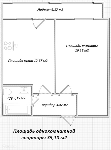 Площадь квартиры 35,1 м2