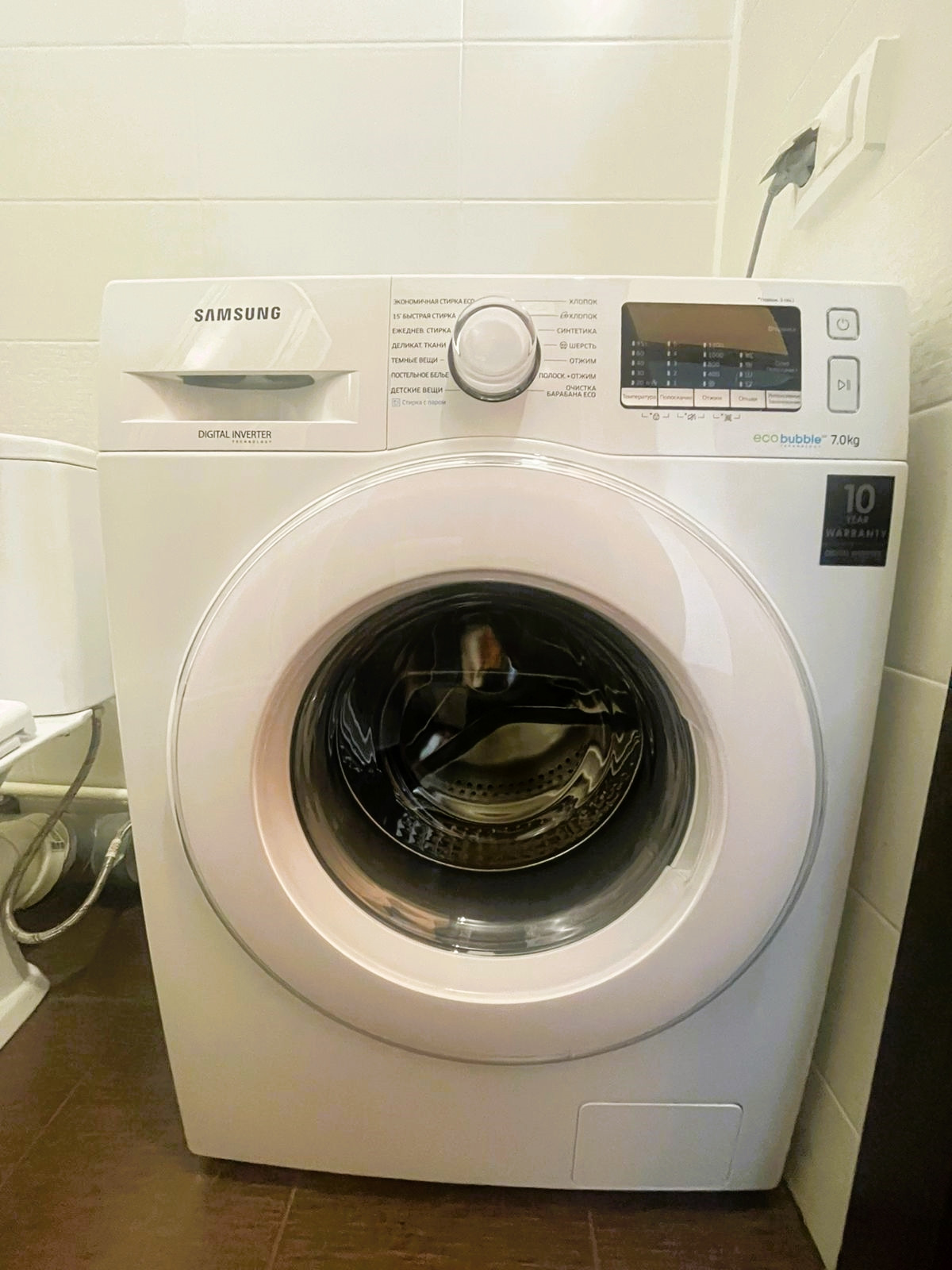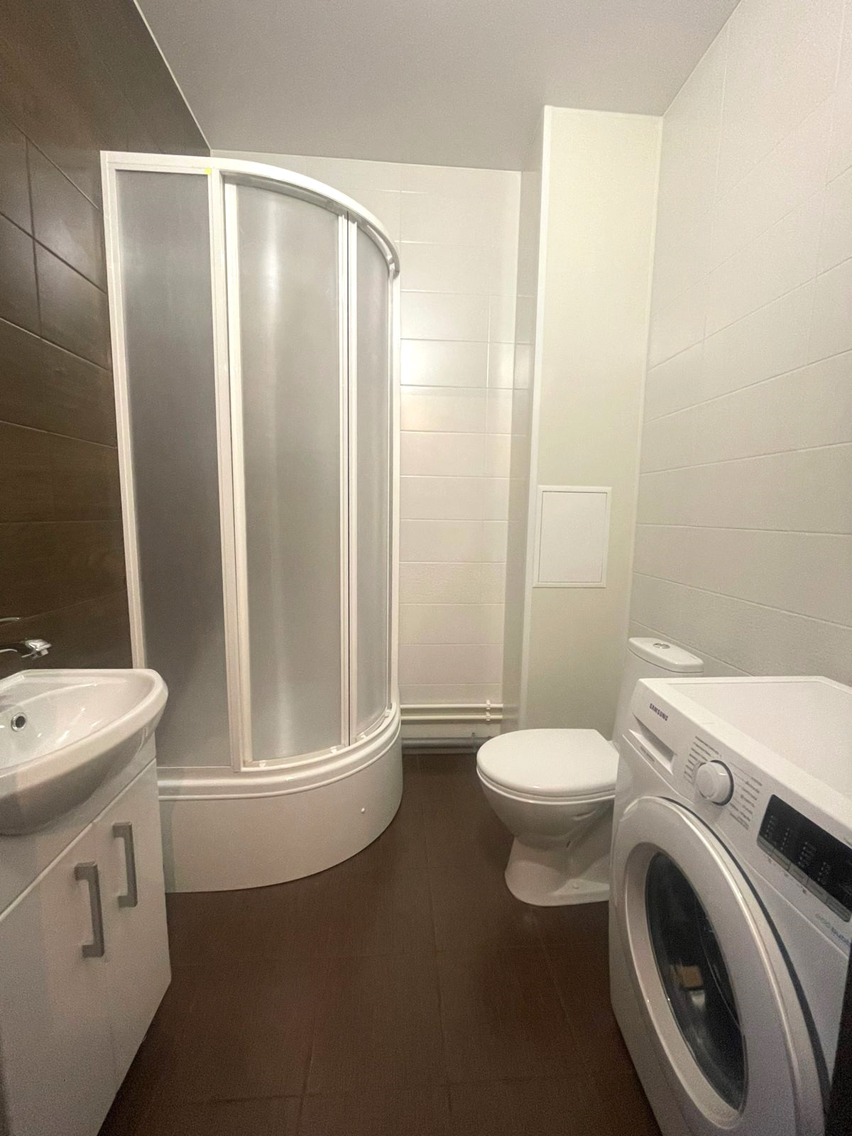 в ванной предусмотрено место для стиральной машинки,