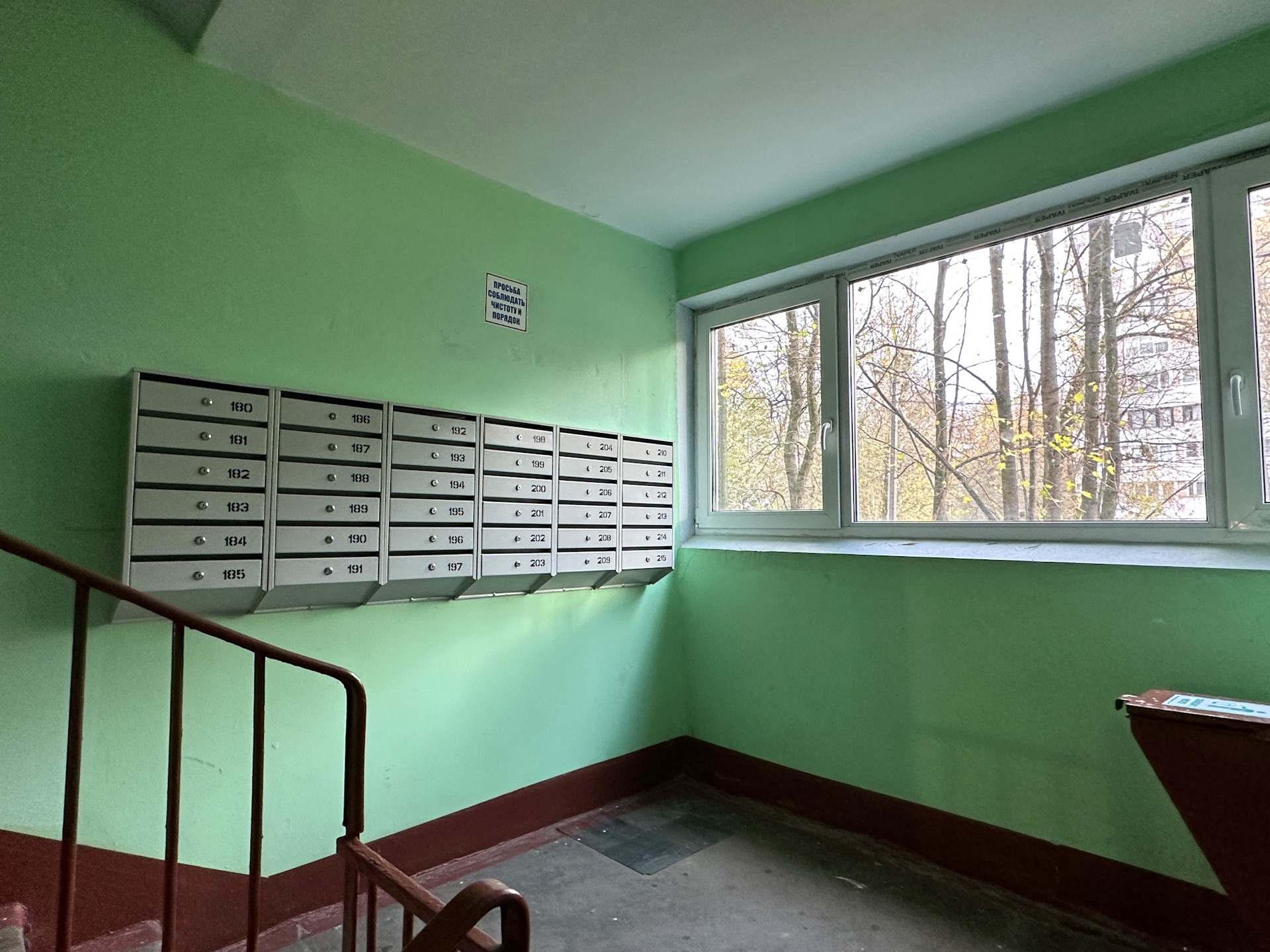 Вид из окон – в зеленый двор, на запад.