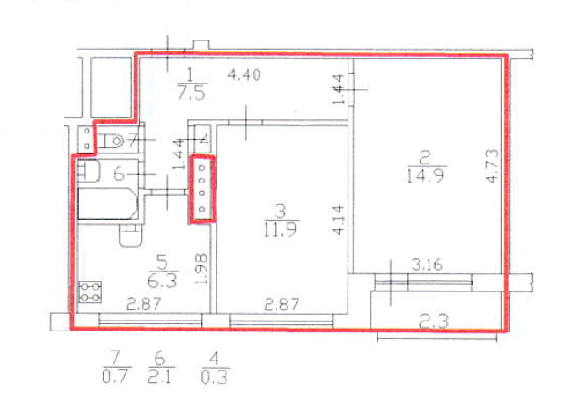 Общая площадь 43.7 м2