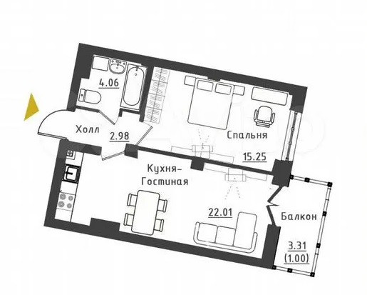 Жилая площадь 15.5 м2