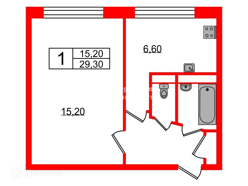 Общая площадь 29.3 м2