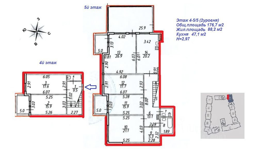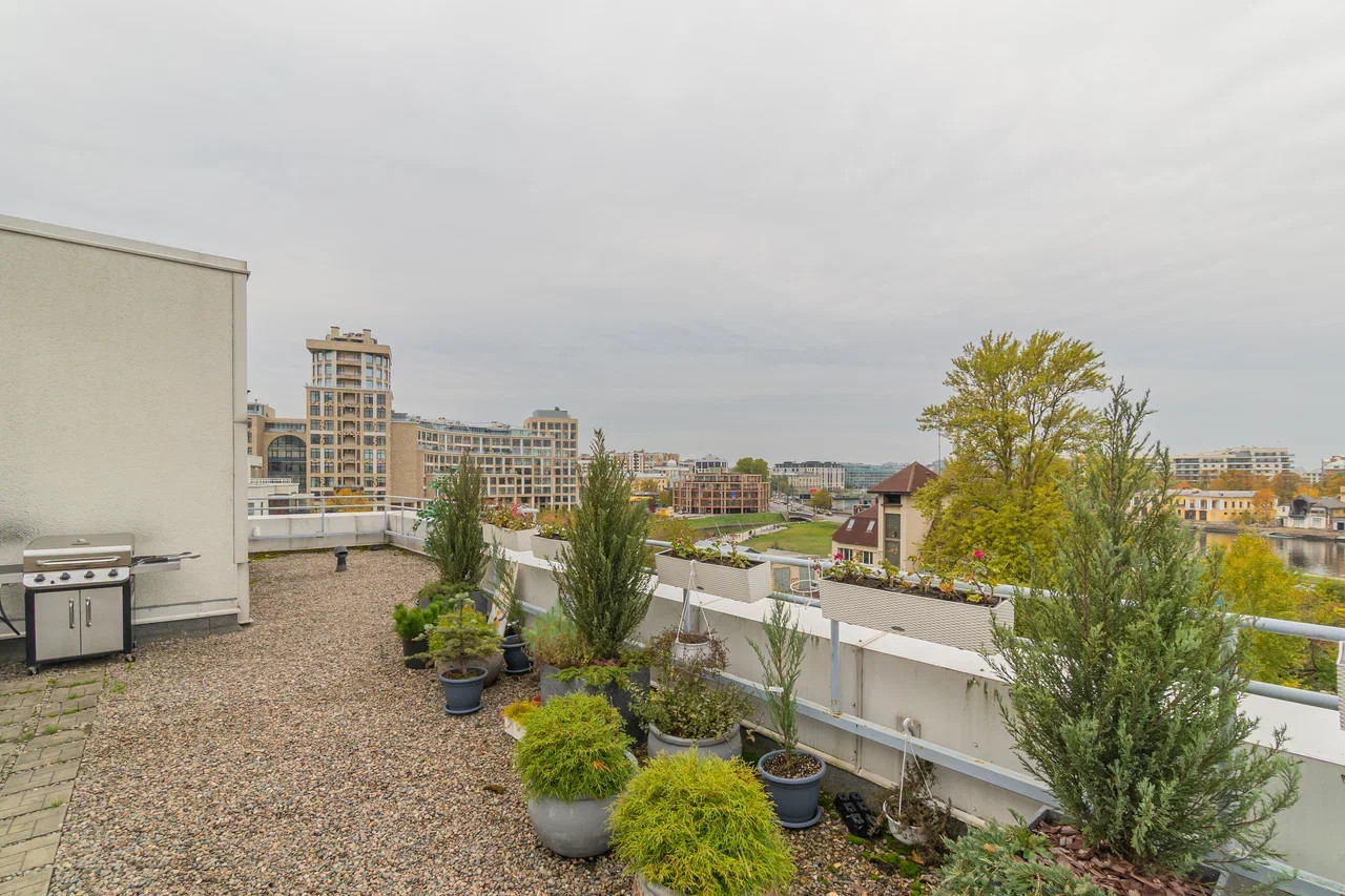 12328. Предлагается к продаже уникальная видовая двухуровневая квартира в жилом комплексе, Ориенталь, расположенном в окружении воды и зелени с видом на Малую Невку и реку Карповку. Терраса не входит в общую площадь, по факту квартира 202 кв.м. ЖК выделяется среди других проектов оригинальной ступенчатой архитектурой. В доме всего 335 квартир. Это одно из самых удобных и комфортных мест для проживания на Петроградской стороне. В пешей доступности вся необходимая инфраструктура, дом отвечает всем требованиям жилья бизнес-класса, в первую очередь это отличное местоположение, красивая архитектура, закрытая территория, автономная газовая котельная с современными системами фильтрации воды, вентиляции и кондиционирования, подземный паркинг с доступом из лифта, системы охраны, и видеонаблюдения. Просторная территория комплекса очень красиво и аккуратно благоустроена, тропинки, клумбы, скамейки, детская площадка, выполнен ландшафтный дизайн, снаружи комплекс окружен зелеными насаждениями. За чистотой и порядком следит надежная управляющая компания. Гостевая парковка за шлагбаумом комплекса, подземный паркинг, кладовые, колясочные. При желании можете приобрести паркинг. Станция метро Чкаловская в 10-ти минутах ходьбы. Квартира находится на 4 и 5 этажах, имеет отличную планировку: кухня гостиная 47.1 кв.м. с выходом на террасу 25,9 кв.м., 5 изолированных комнат 17.6+15.9 с выходом на панорамную лоджию, комнаты 17.7+15.9 с выходом на лоджию+21.1, 3 СУ, гардеробная. Окна выходят на три стороны. В квартире выполнен качественный ремонт, встроенная кухонная мебель, техника, мебель в ванных комнатах, встроенные шкафы остаются в подарок Покупателю. Квартира свободна, продается в прямой продаже, никто не зарегистрирован, полная стоимость в договоре, принимаются любые виды оплаты.