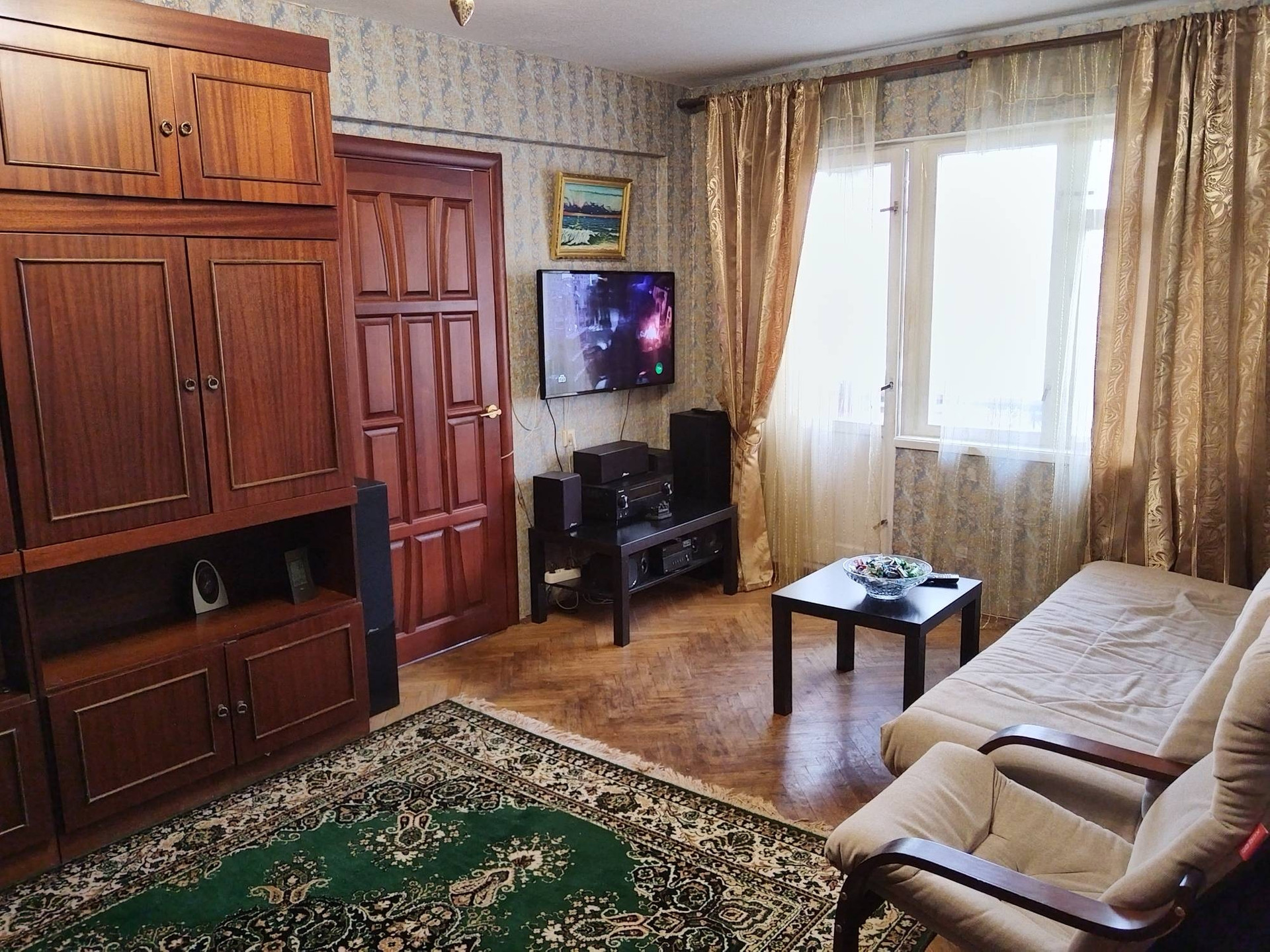 Комнаты смежные. Балкон застеклен. Соседи не беспокоят. Просмотры по