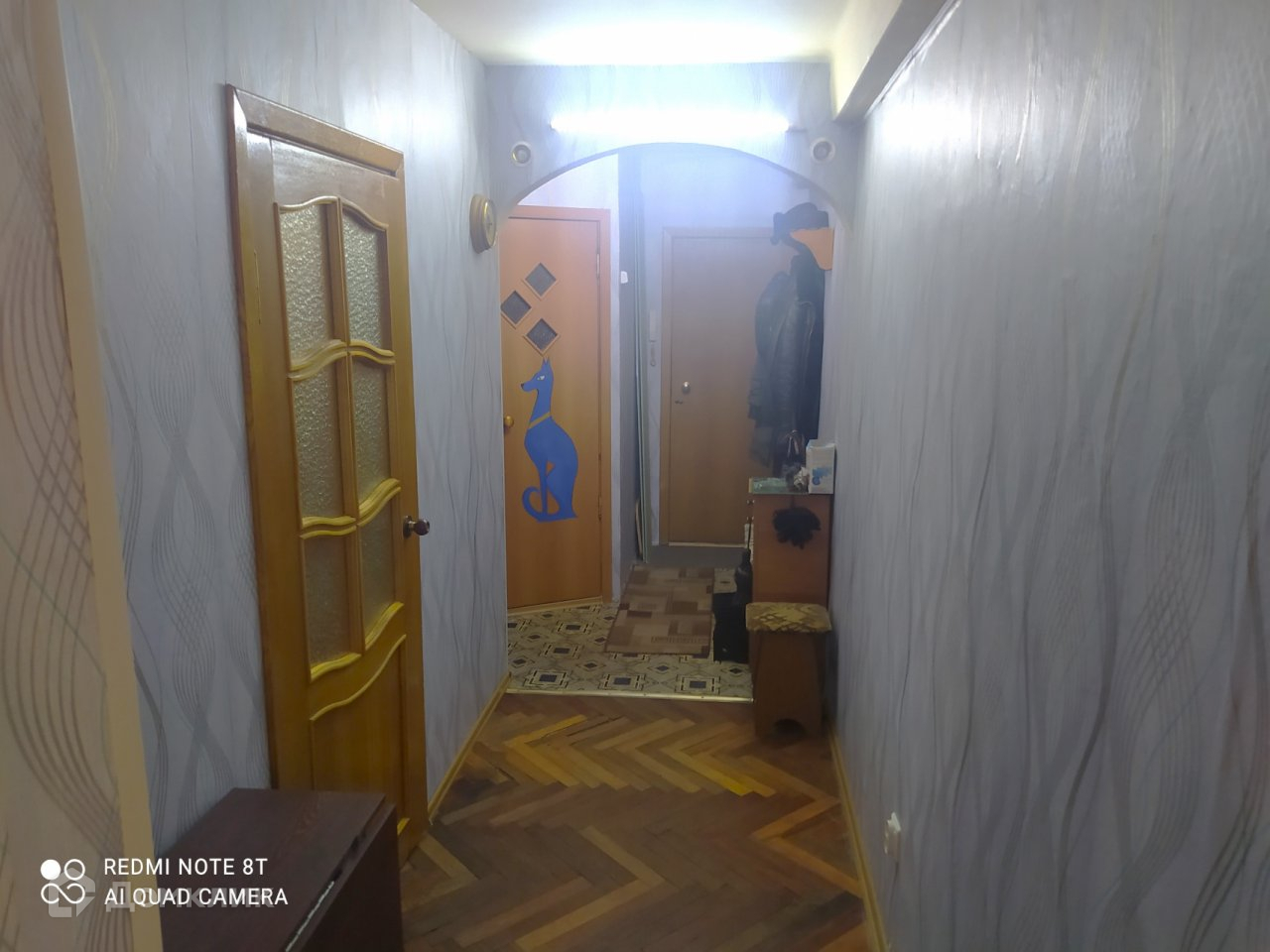 При входе -прихожая для уличной одежды и обуви. Широкий коридор.