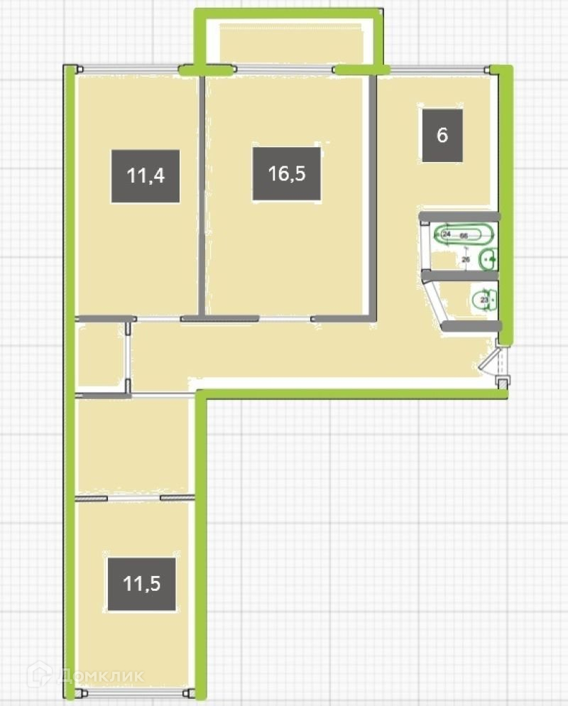 Продается трехкомнатная квартира с изолированными комнатами 16,5+11,4+13,5 (зонирована 11,5+2)