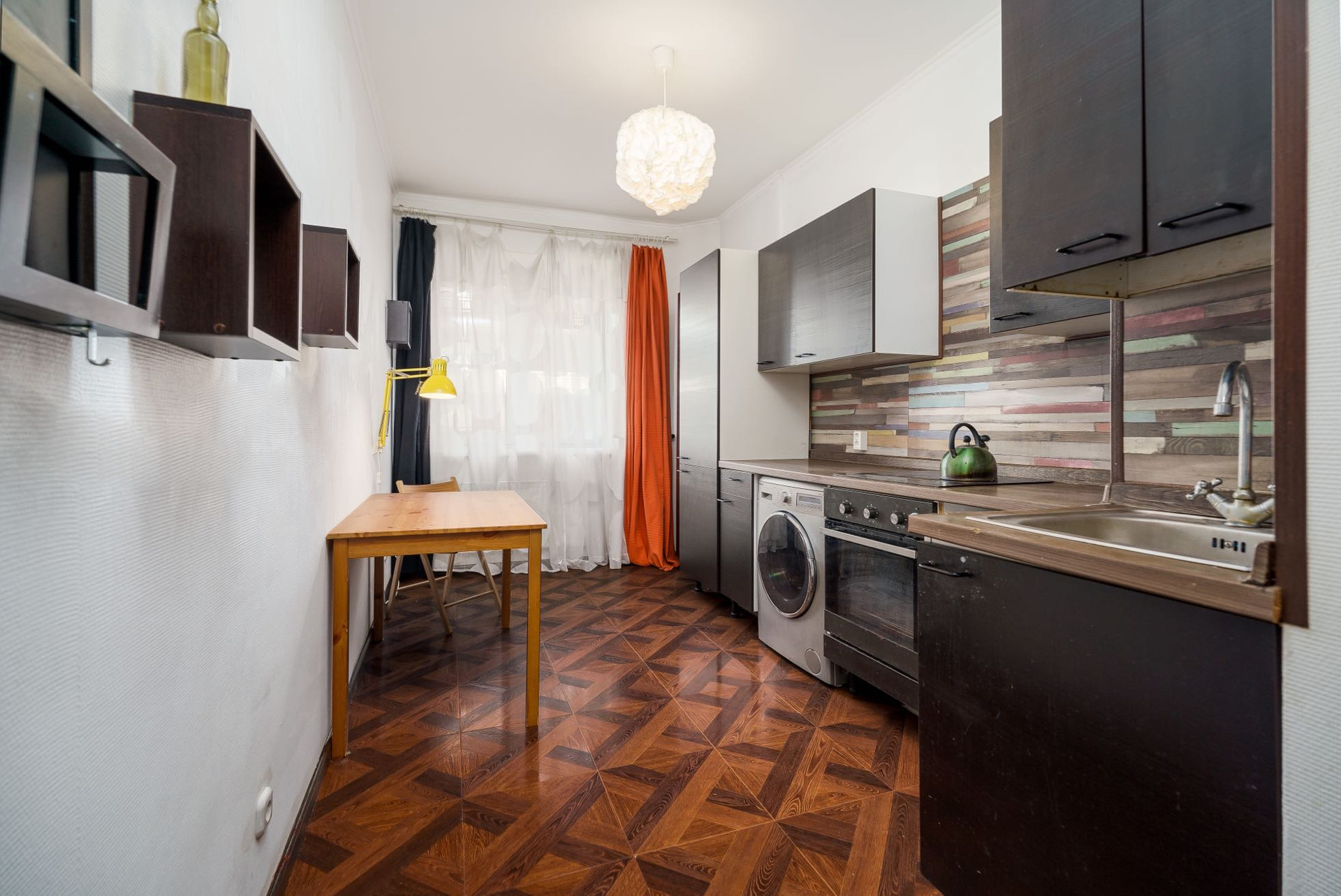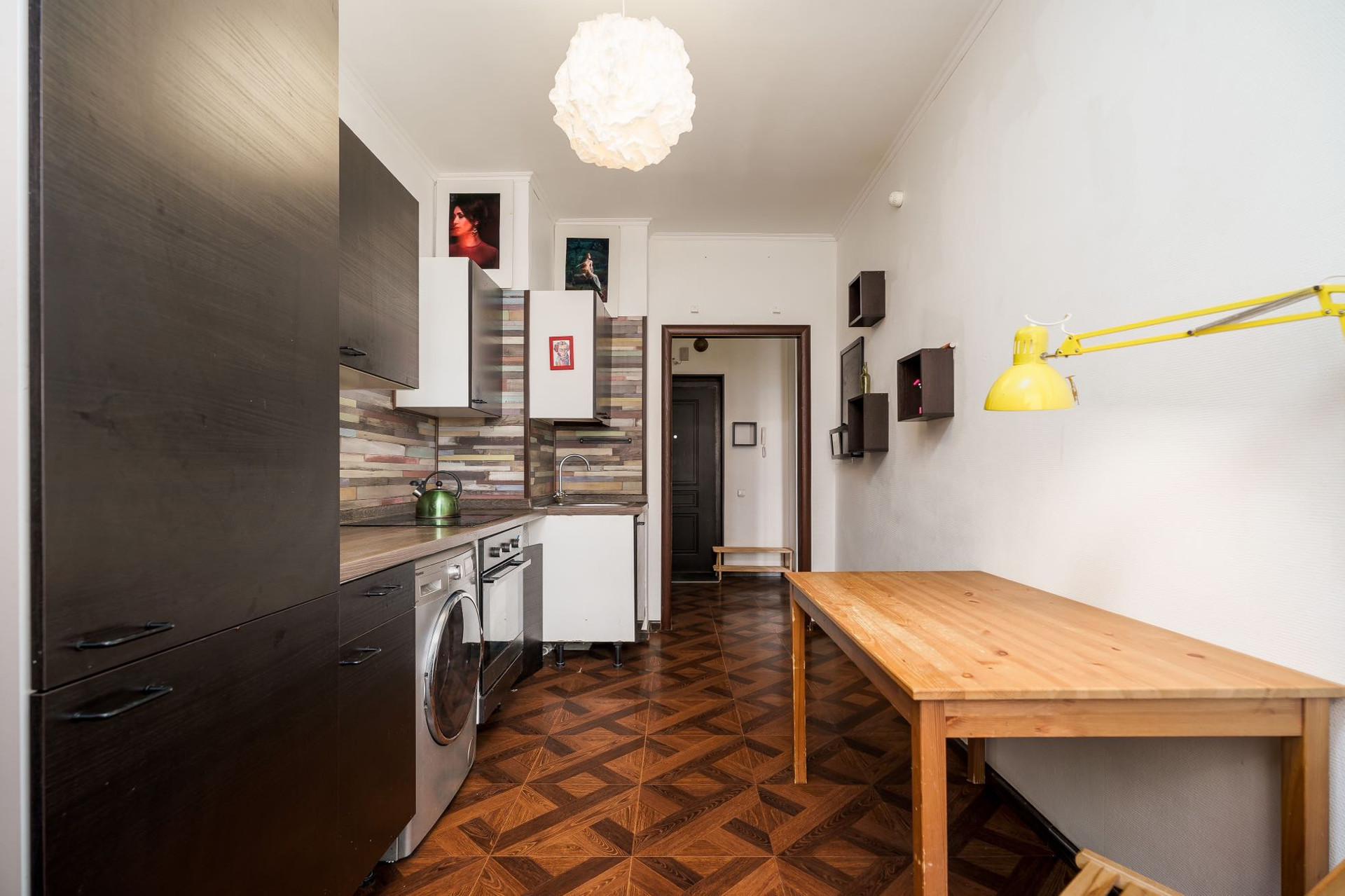 Кухня и кухонная техника IKEA. В коридоре большой икеевский гардероб.