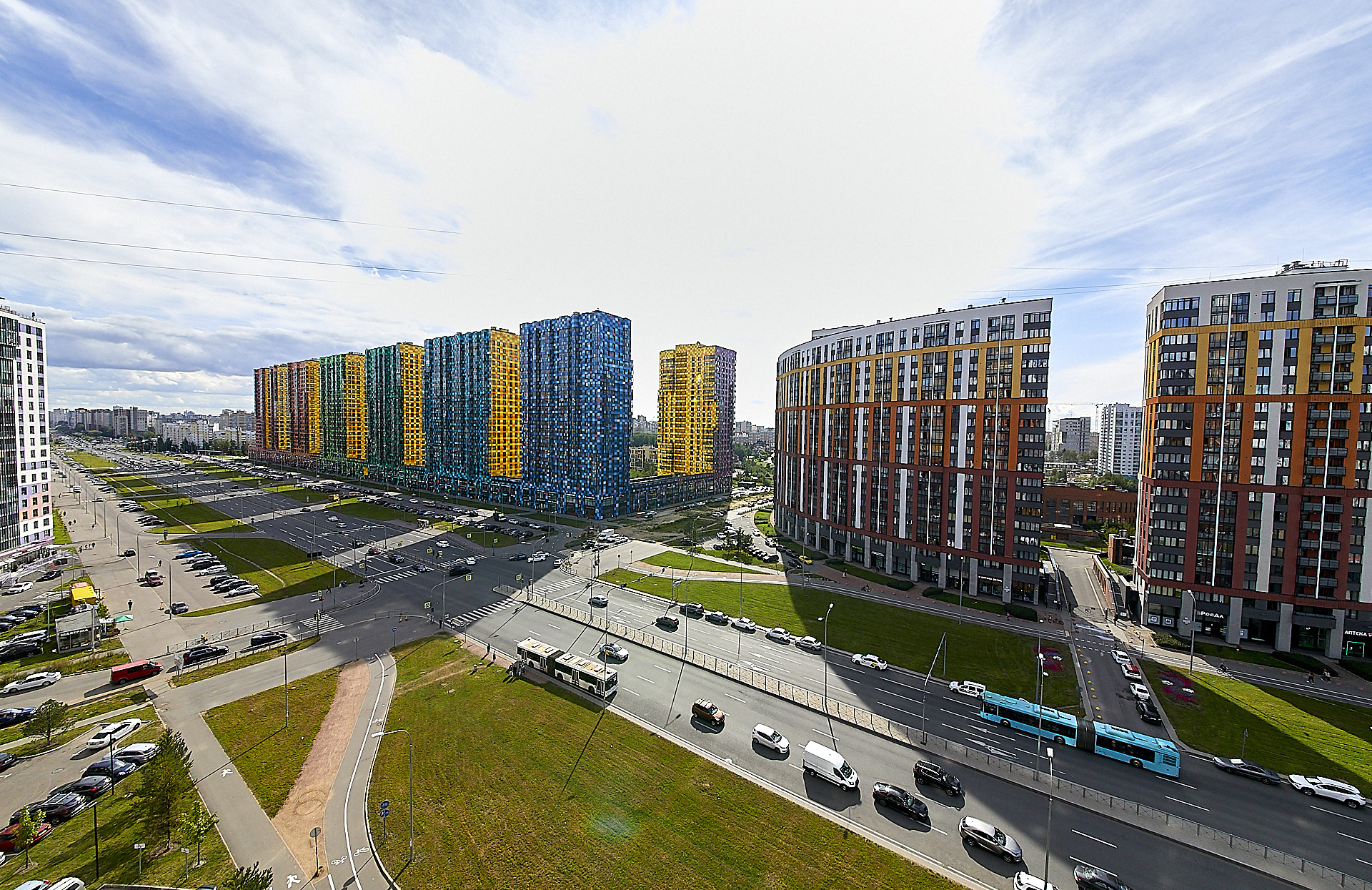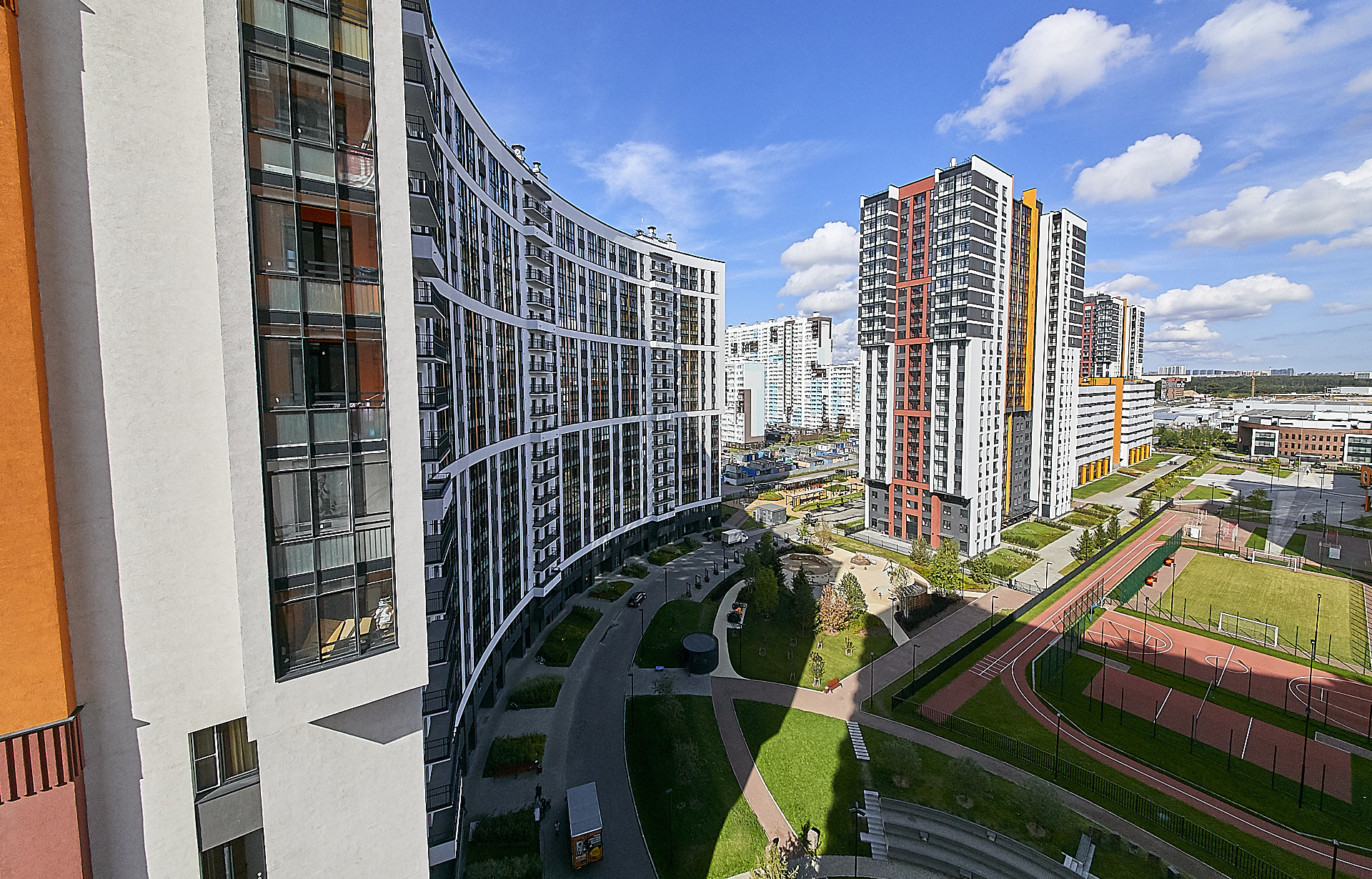 Территория комплекса полностью закрыта для посторонних, установлено круглосуточное видеонаблюдение. Жильцы могут управлять камерами видеонаблюдения, домофоном и шлагбаумом с мобильных телефонов. В состав жилого комплекса входит 2 детских сада и школа на 825 мест. Внутренний двор свободный от машин.