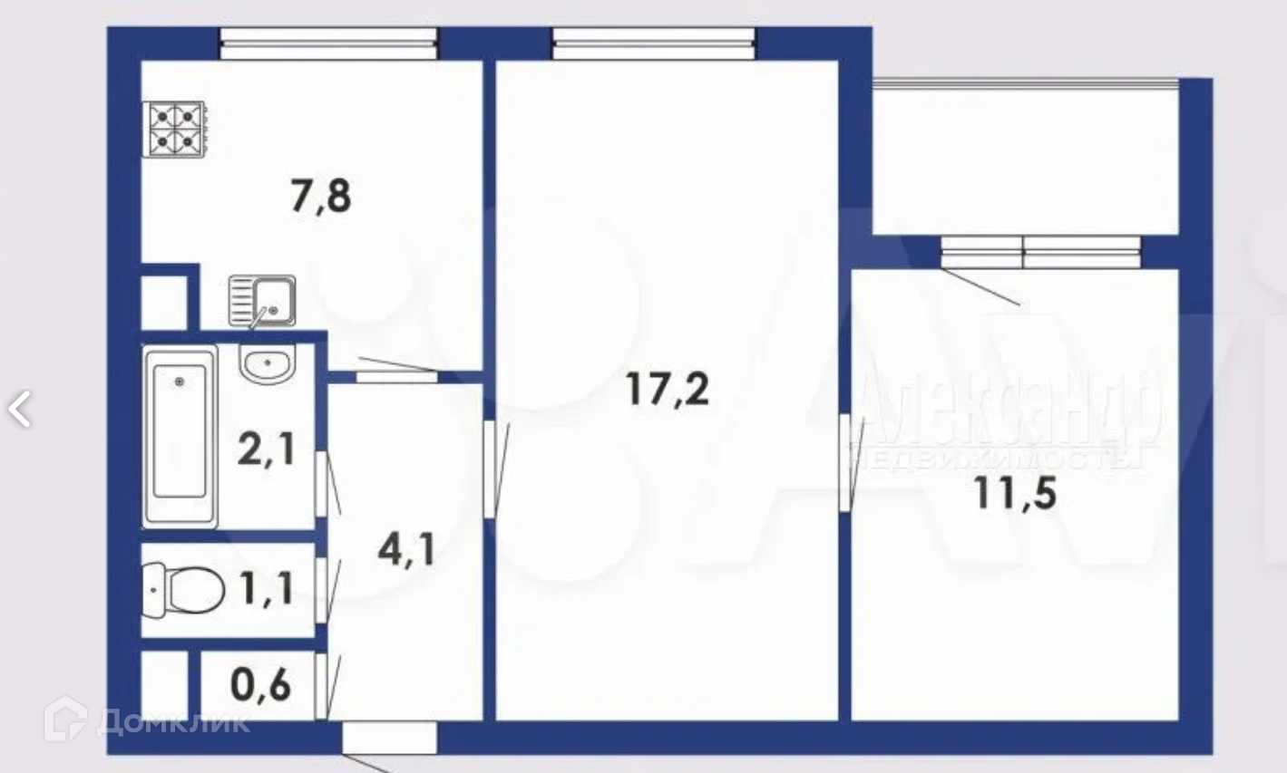 2-комнатная квартира, 44.8 м2, этаж 9 / 9, на продажу в Санкт-Петербурге, Искровский проспект, 20