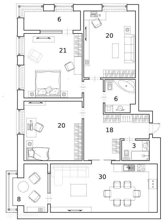 Площадь кухни 30 м2