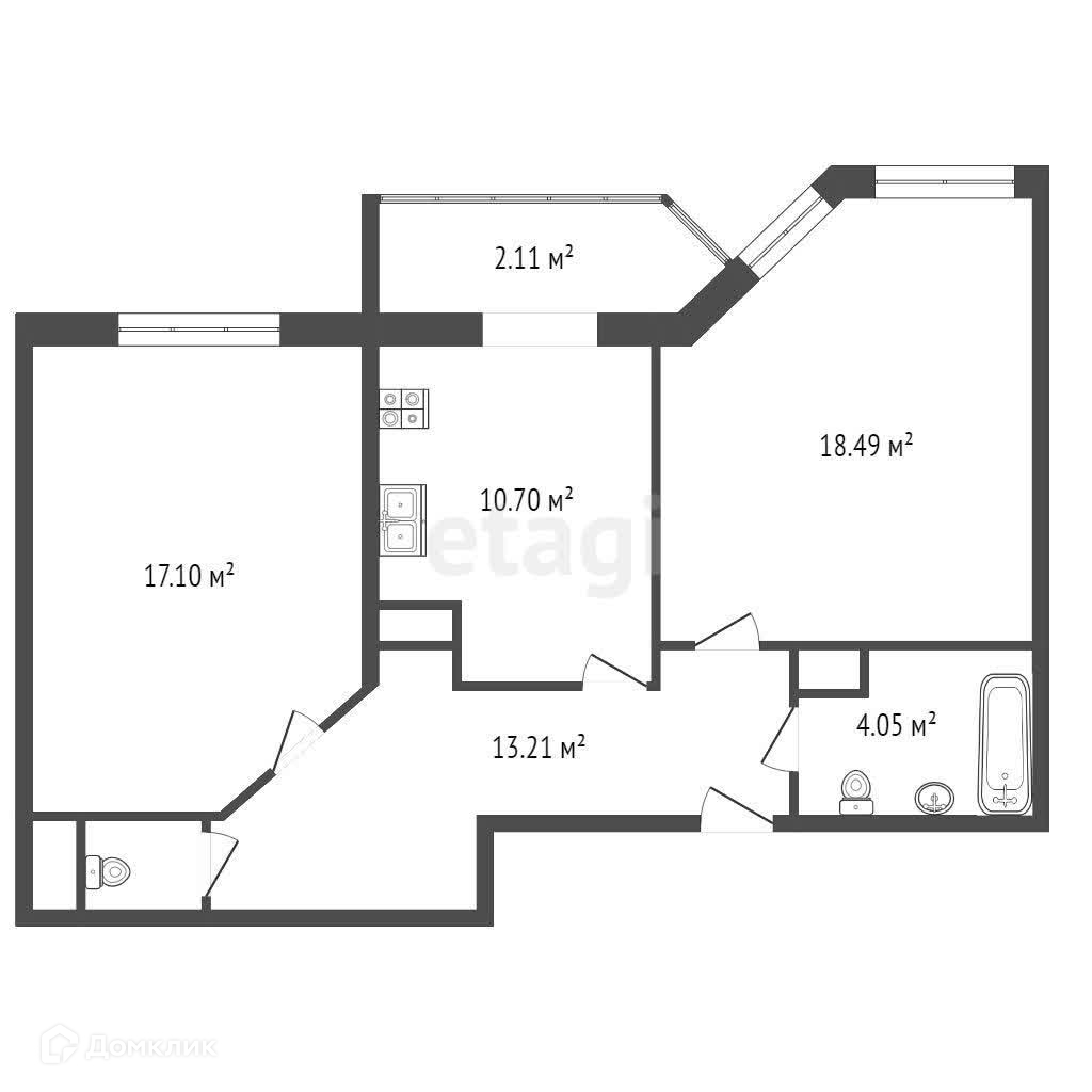 Общая площадь 61.8 м2