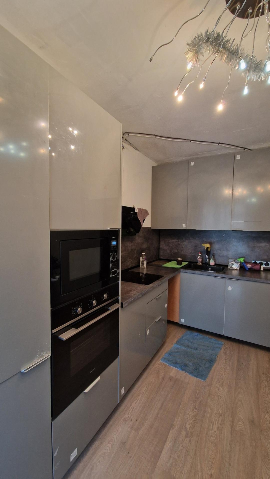 В квартире выполнена подчистовая отделка, осуществлена разводка воды и электричества ,установлены батареи, выполнен ремонт в санузлах, установлена отличная кухня с качественной техникой.