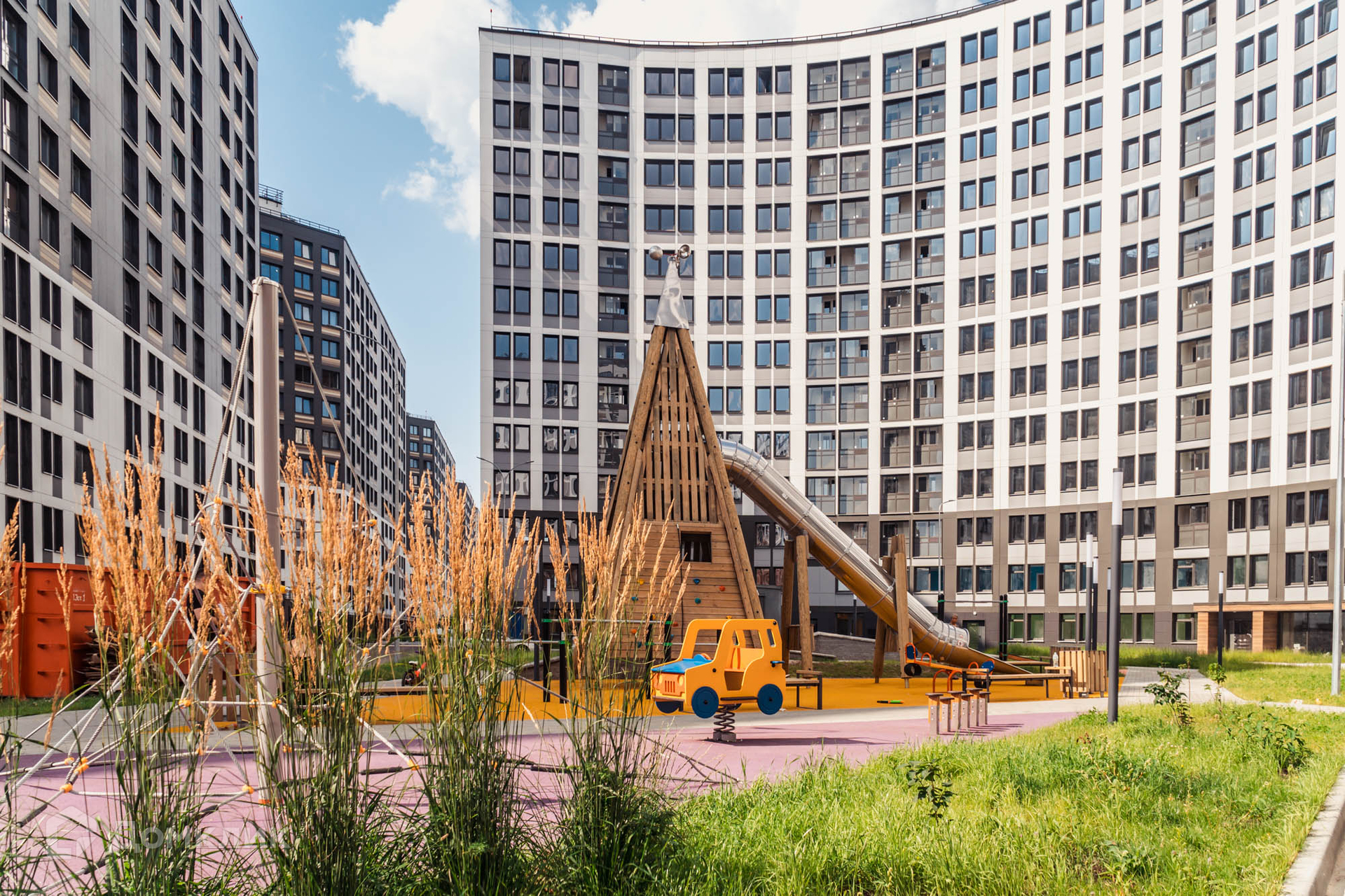 На придомовой территории, закрытой от посторонних и машин, обустроены детские и спортивные площадки, зоны для отдыха. В корпусах предусмотрены просторные и светлые холлы с дизайнерской отделкой, бесшумные скоростные лифты, места для хранения колясок и велосипедов.