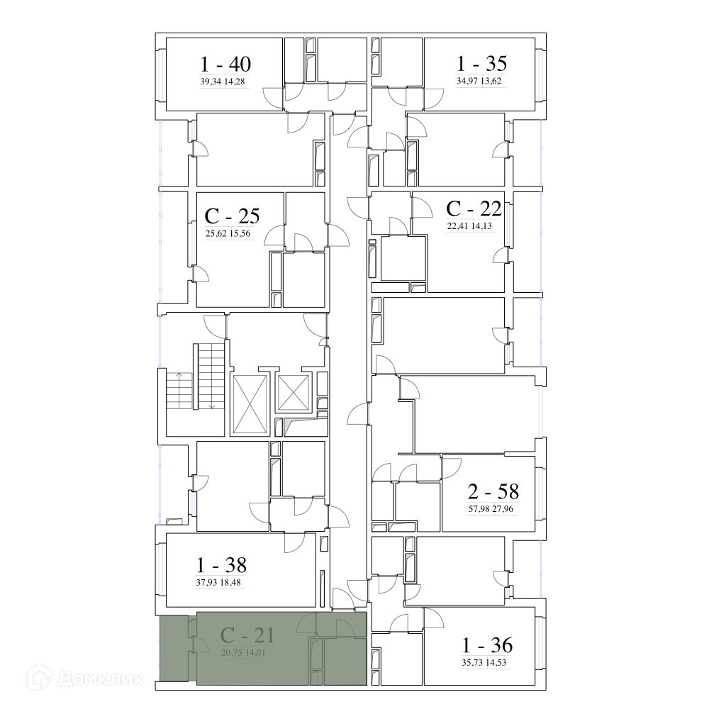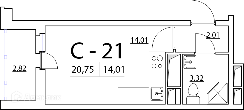 Общая площадь 20.9 м2