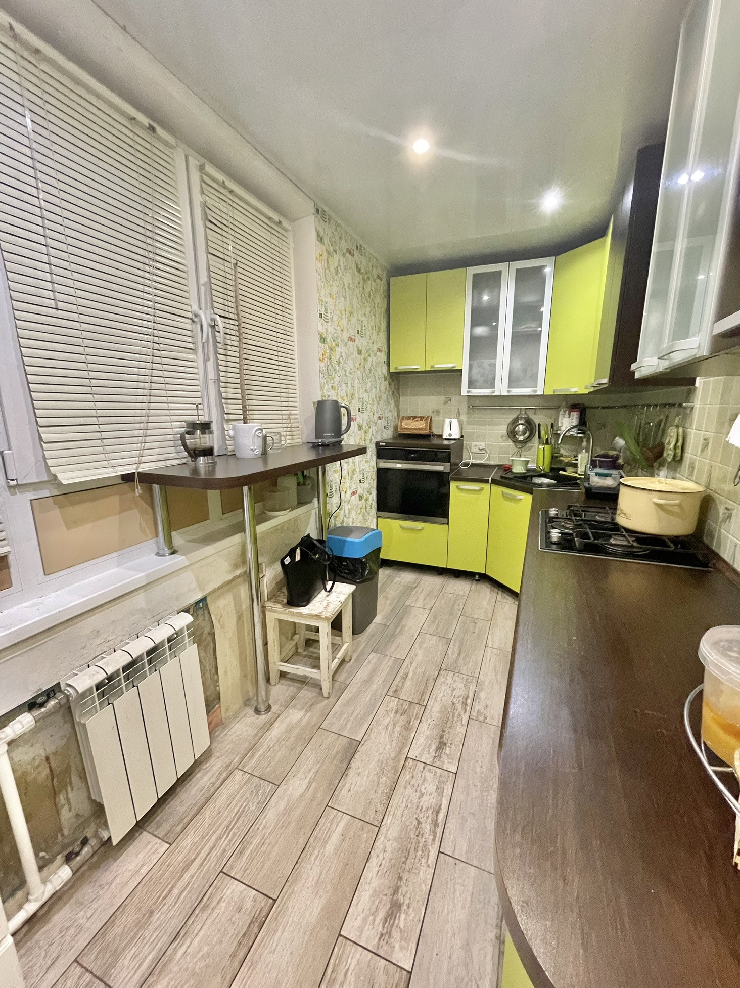 В квартире остается кухня и вся техника( посудомоечная машина, холодильник, плита, духовой шкаф, стиральная машина), остальное по договоренности.