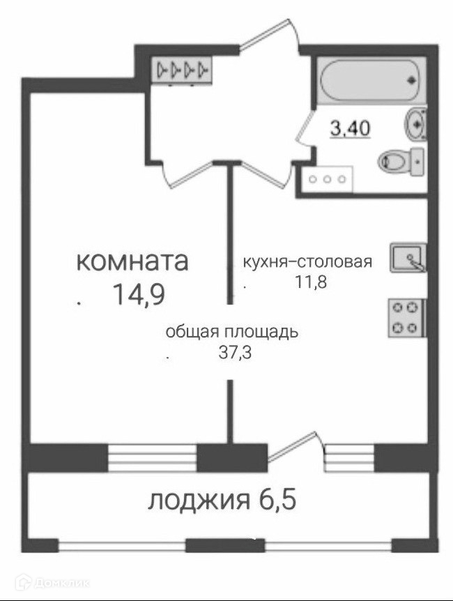 Общая площадь 37.34 м2