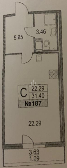 Жилая площадь 22.29 м2