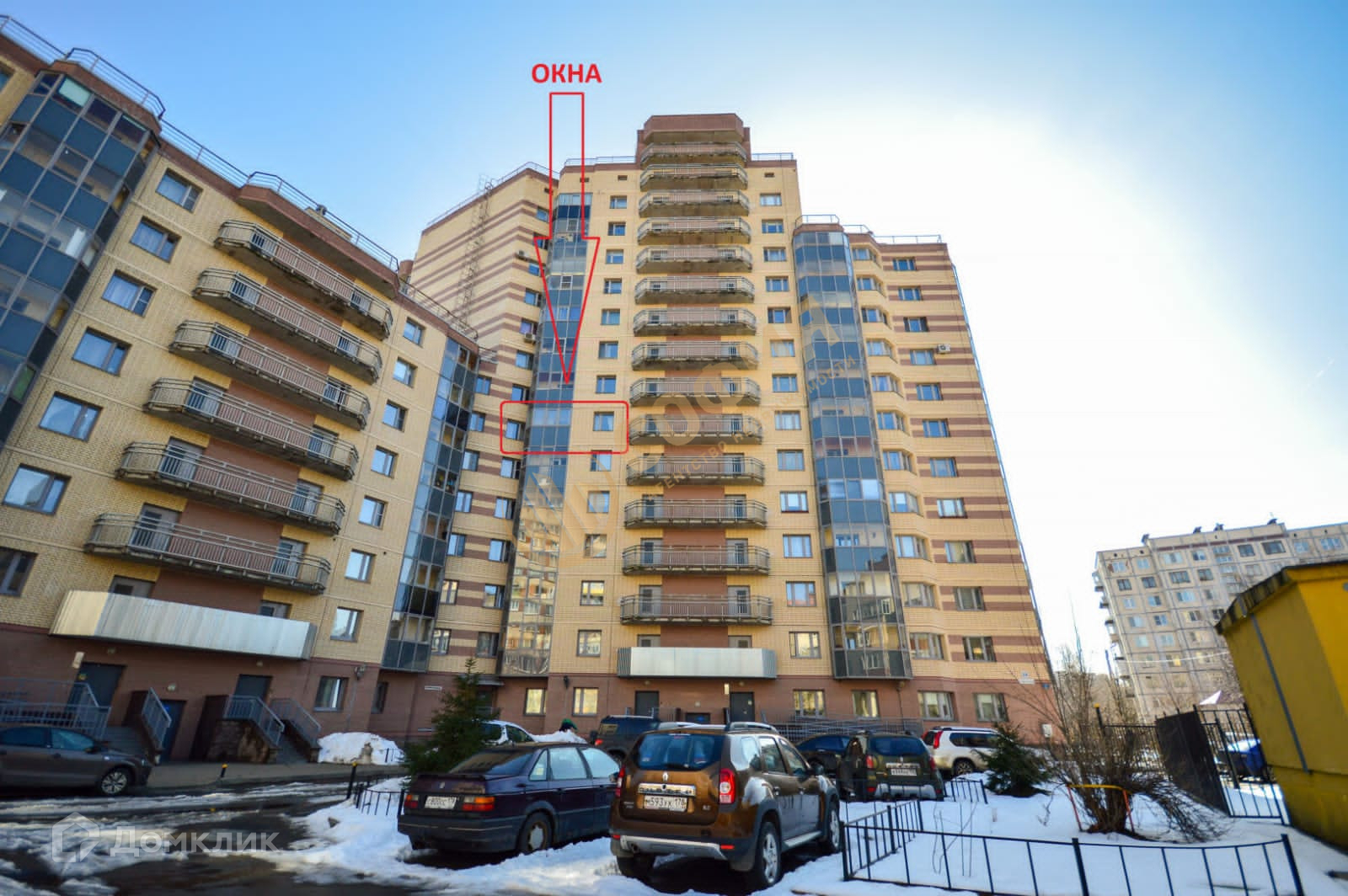 Общая площадь - 90.7 м2, 7 этаж 14ти этажного кирпичного дома. Окна выходят во двор.