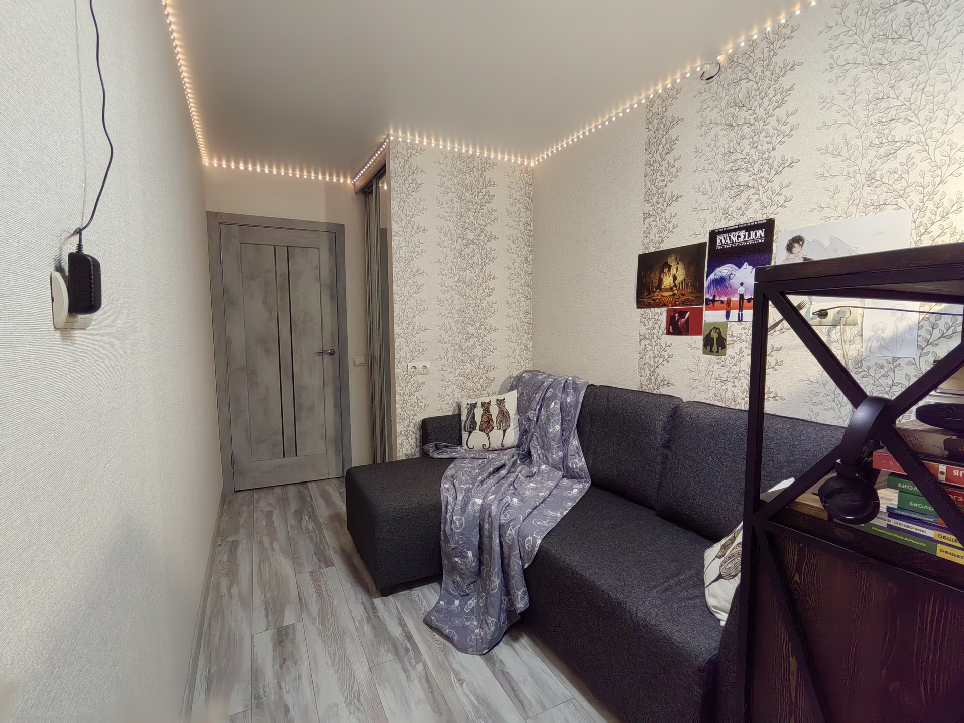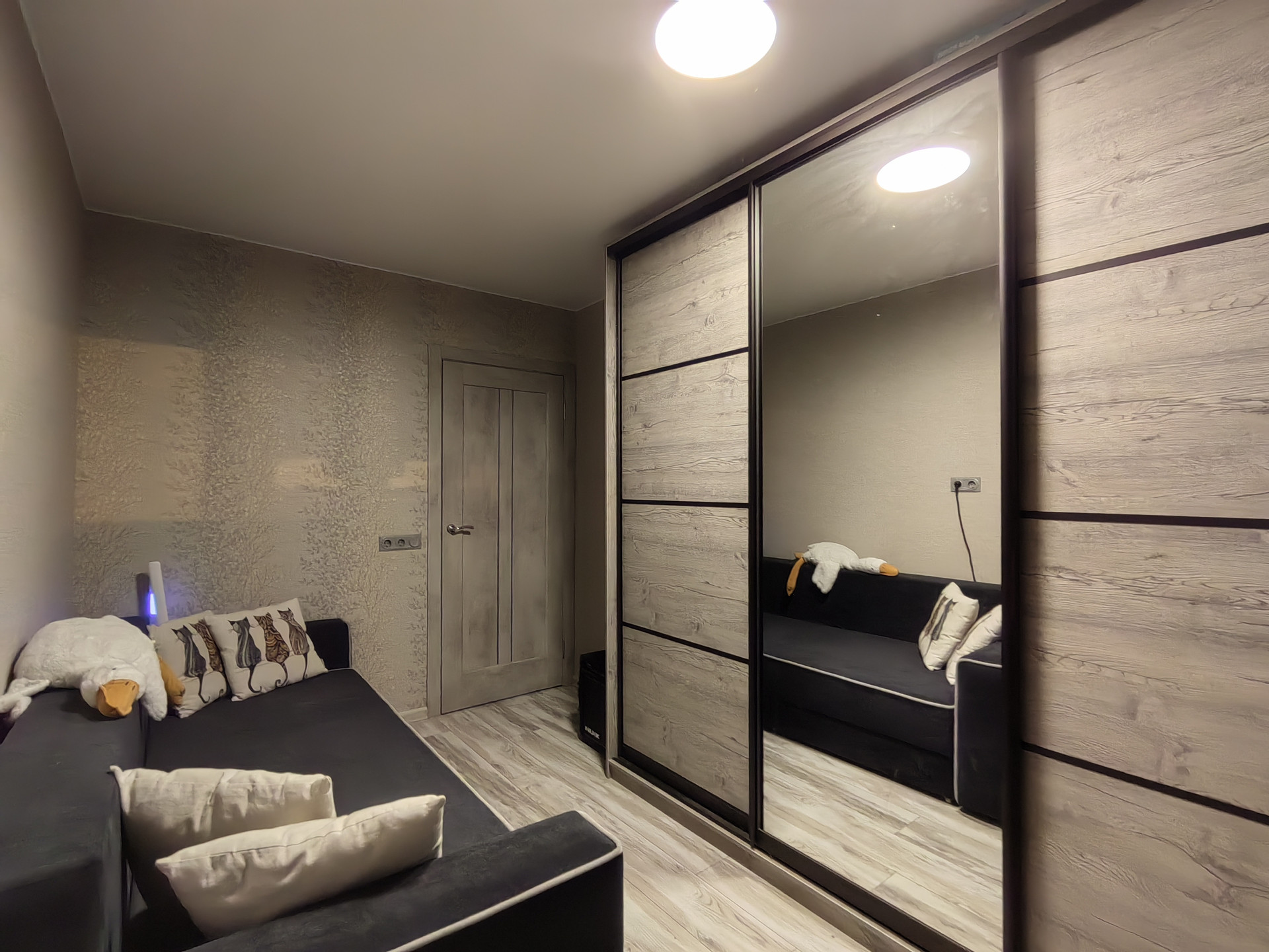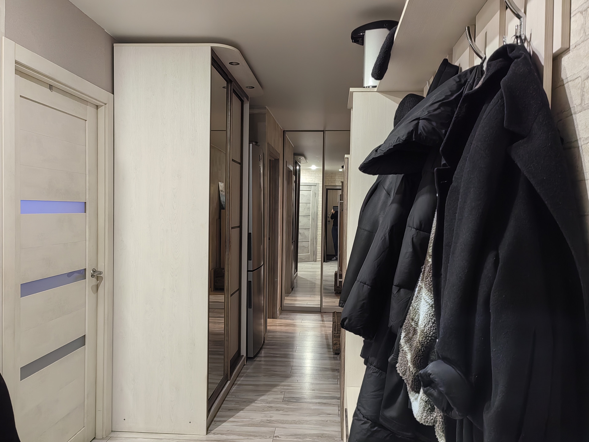 Натяжной потолок со светодиодными светильниками по всей квартире.