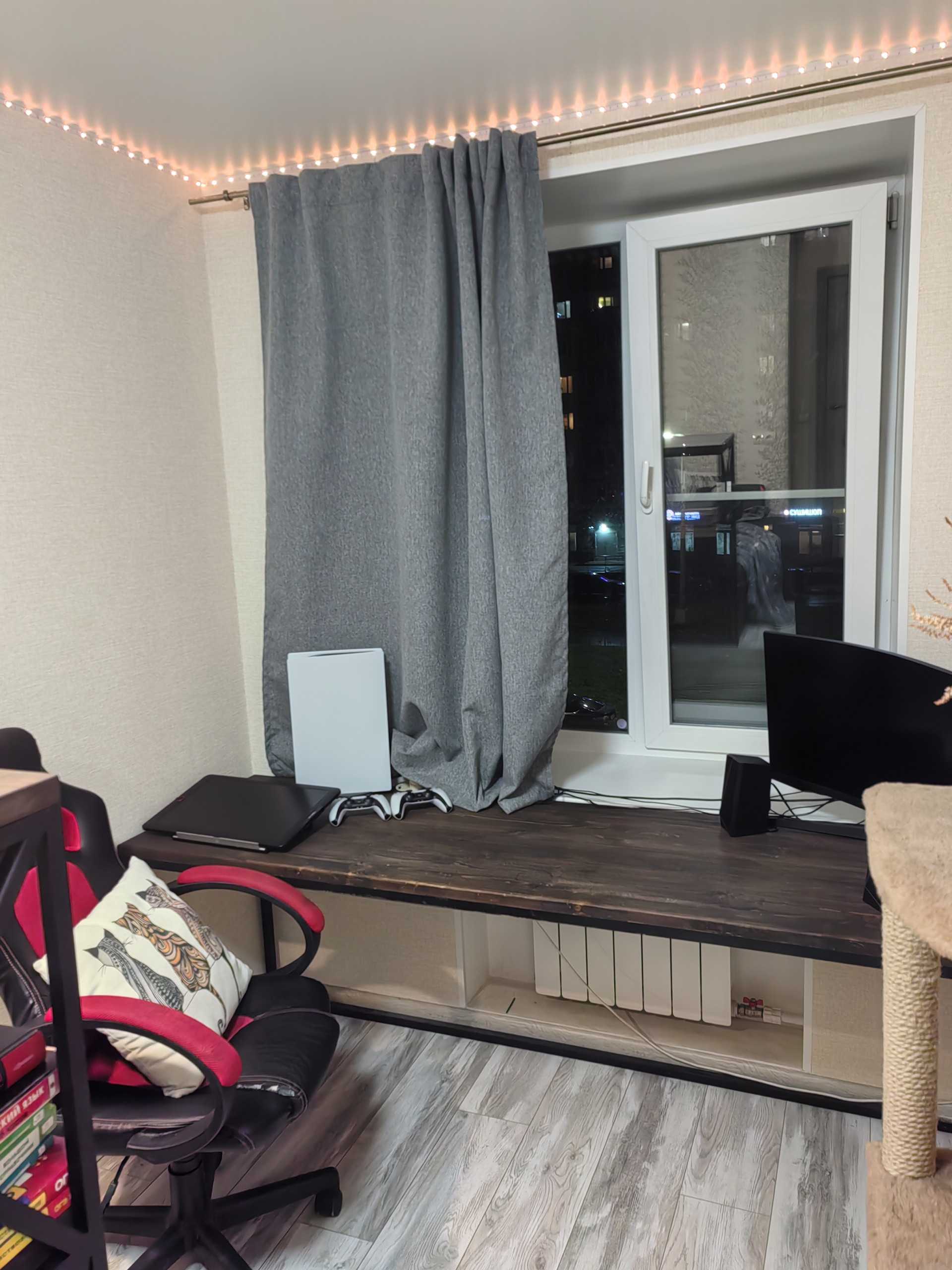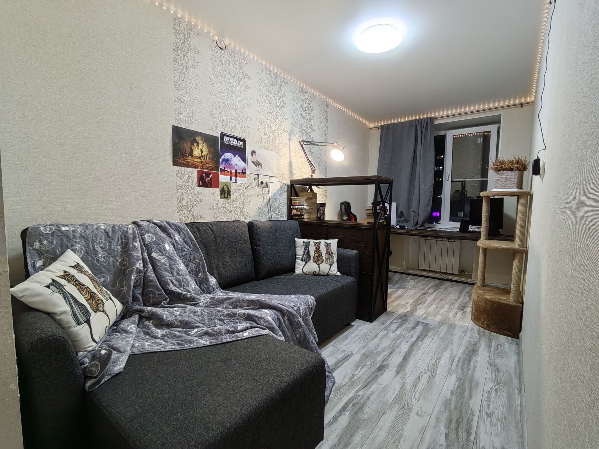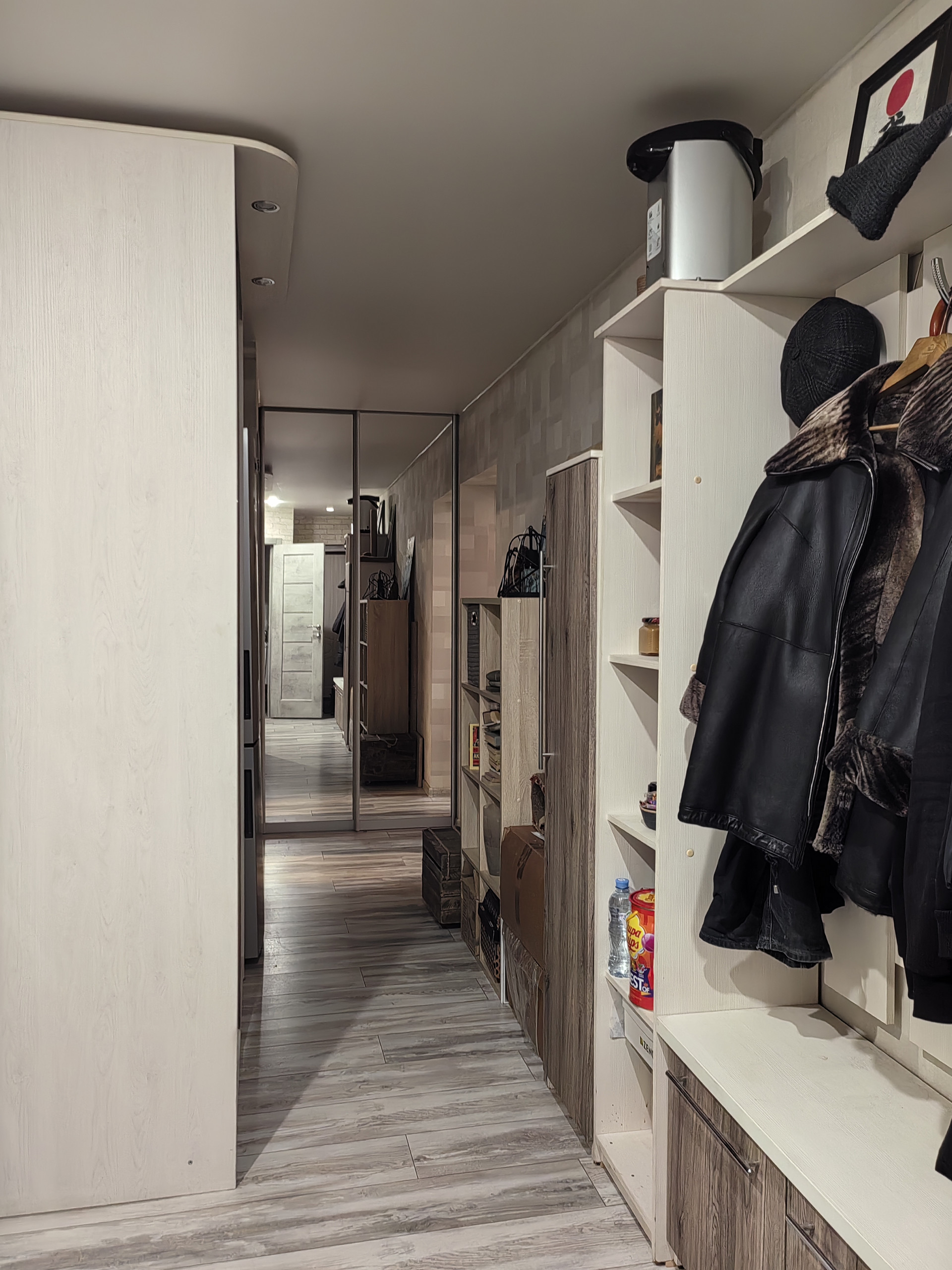 Натяжной потолок со светодиодными светильниками по всей квартире.