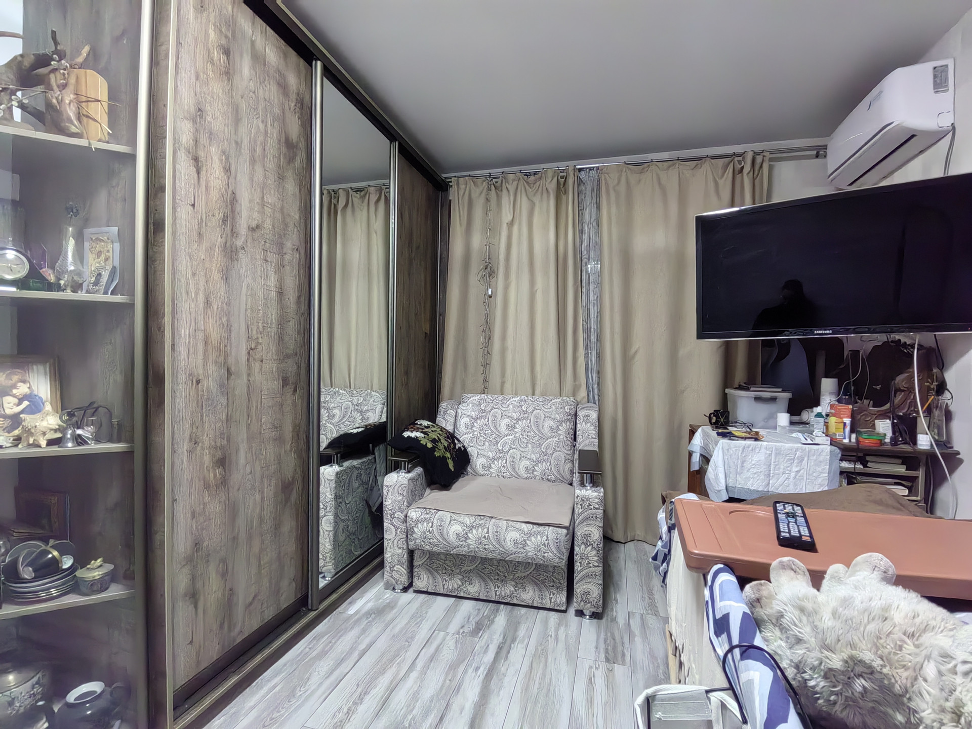 Балкон застеклён. Установлен кондиционер.