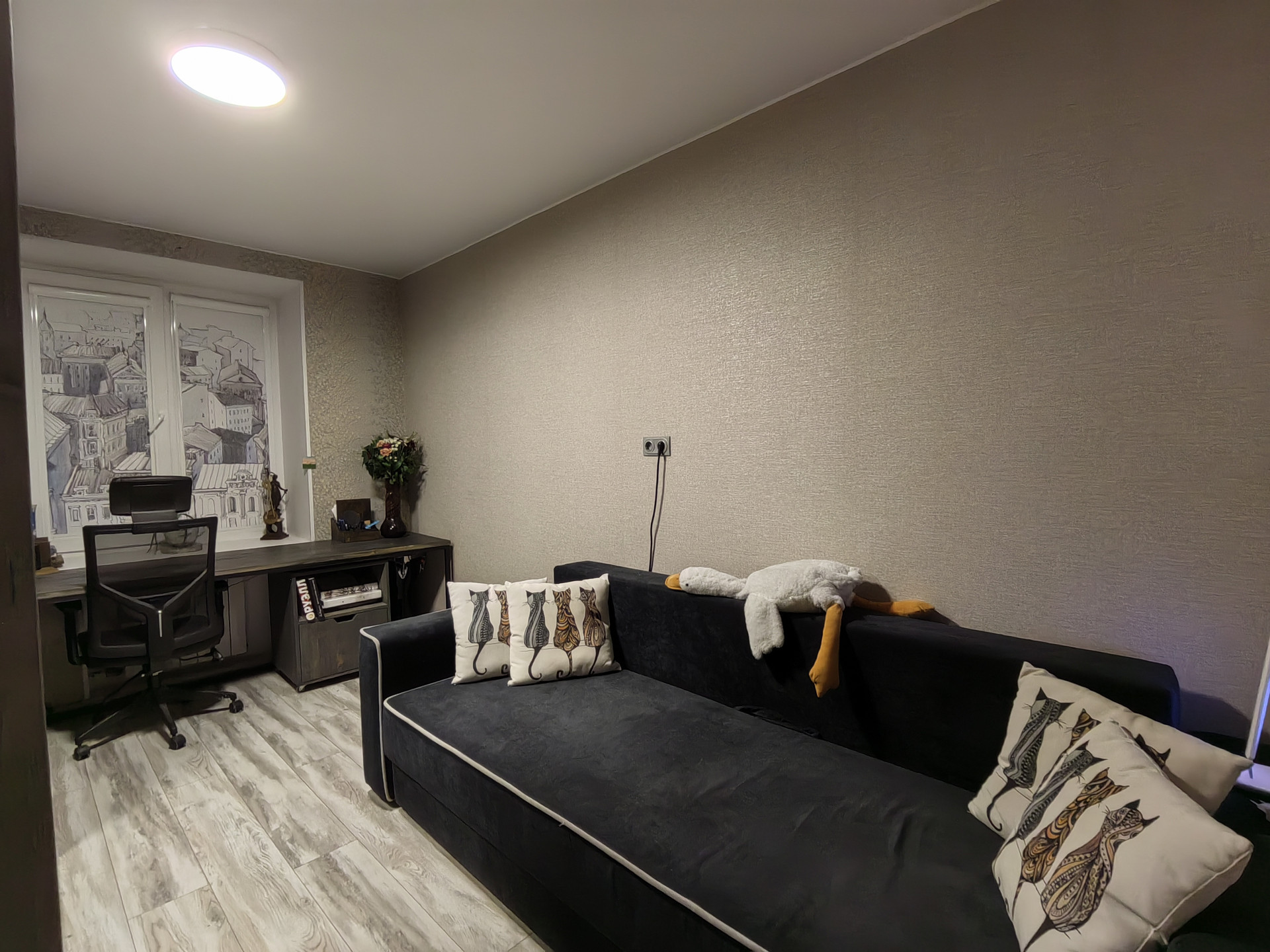 Ремонт выполнен в 2021 году, в современном сдержанном стиле , отделка в белых и светло серых оттенках. Ламинат во всех комнатах, в зоне прихожей, санузле и кухне - плитка.