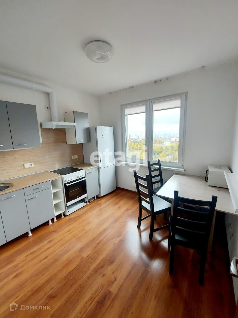 Покупателю остаются: кухонный гарнитур, варочная панель, духовой шкаф, кухонная вытяжка, встраиваемые шкафы.