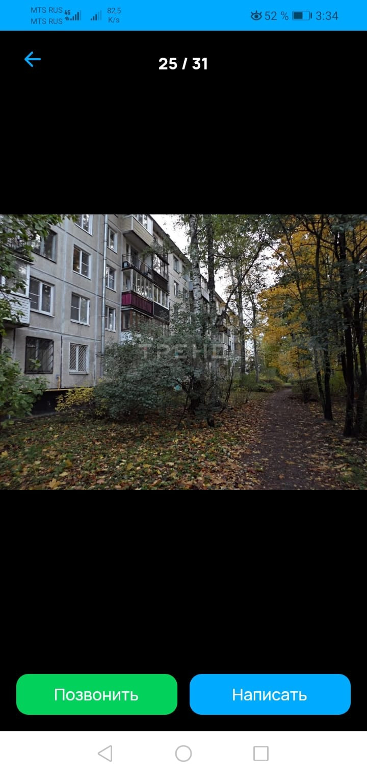 1-комнатная квартира, 31 м2, этаж 1 / 5, на продажу в Санкт-Петербурге, улица Верности, 16
