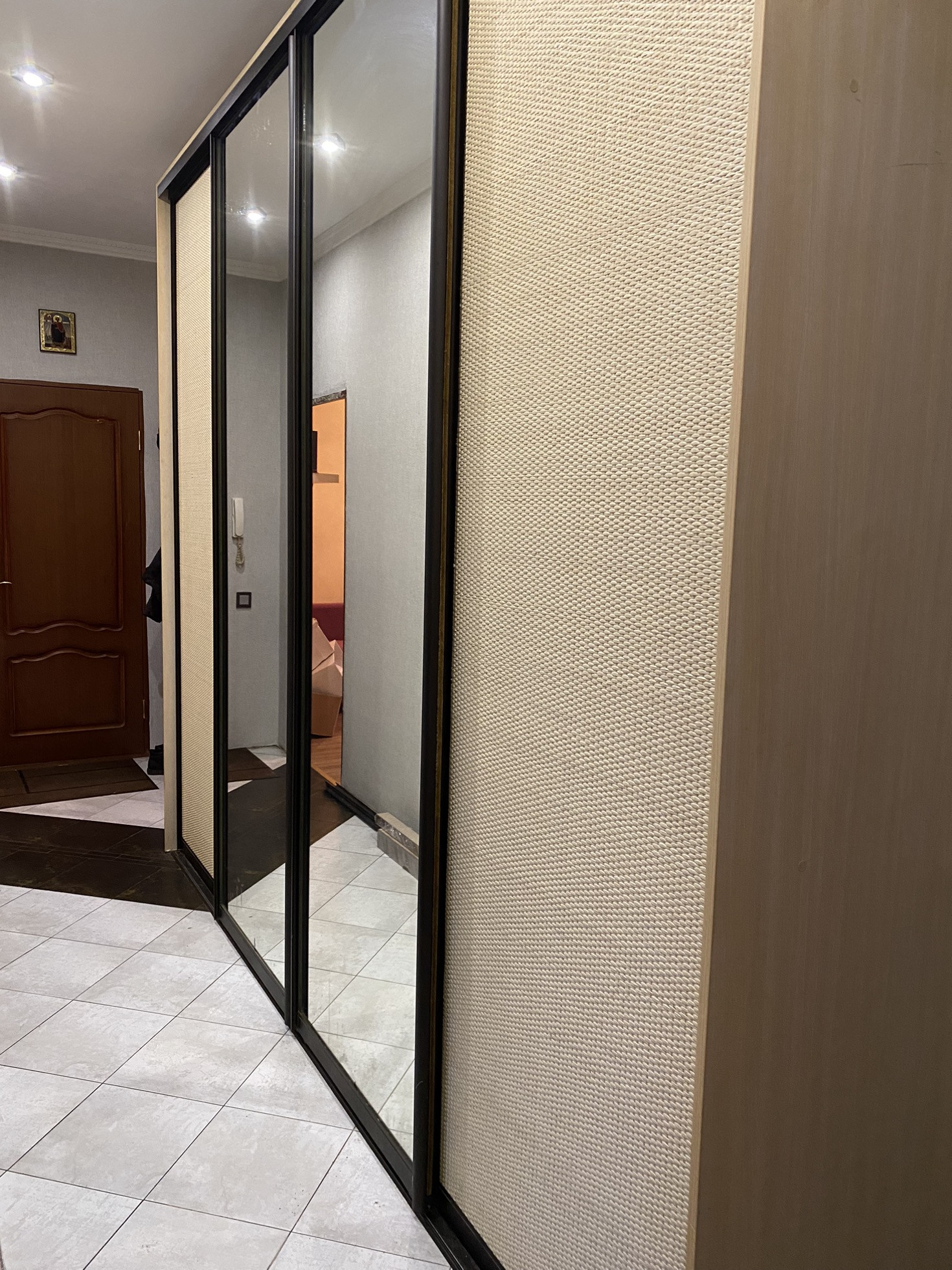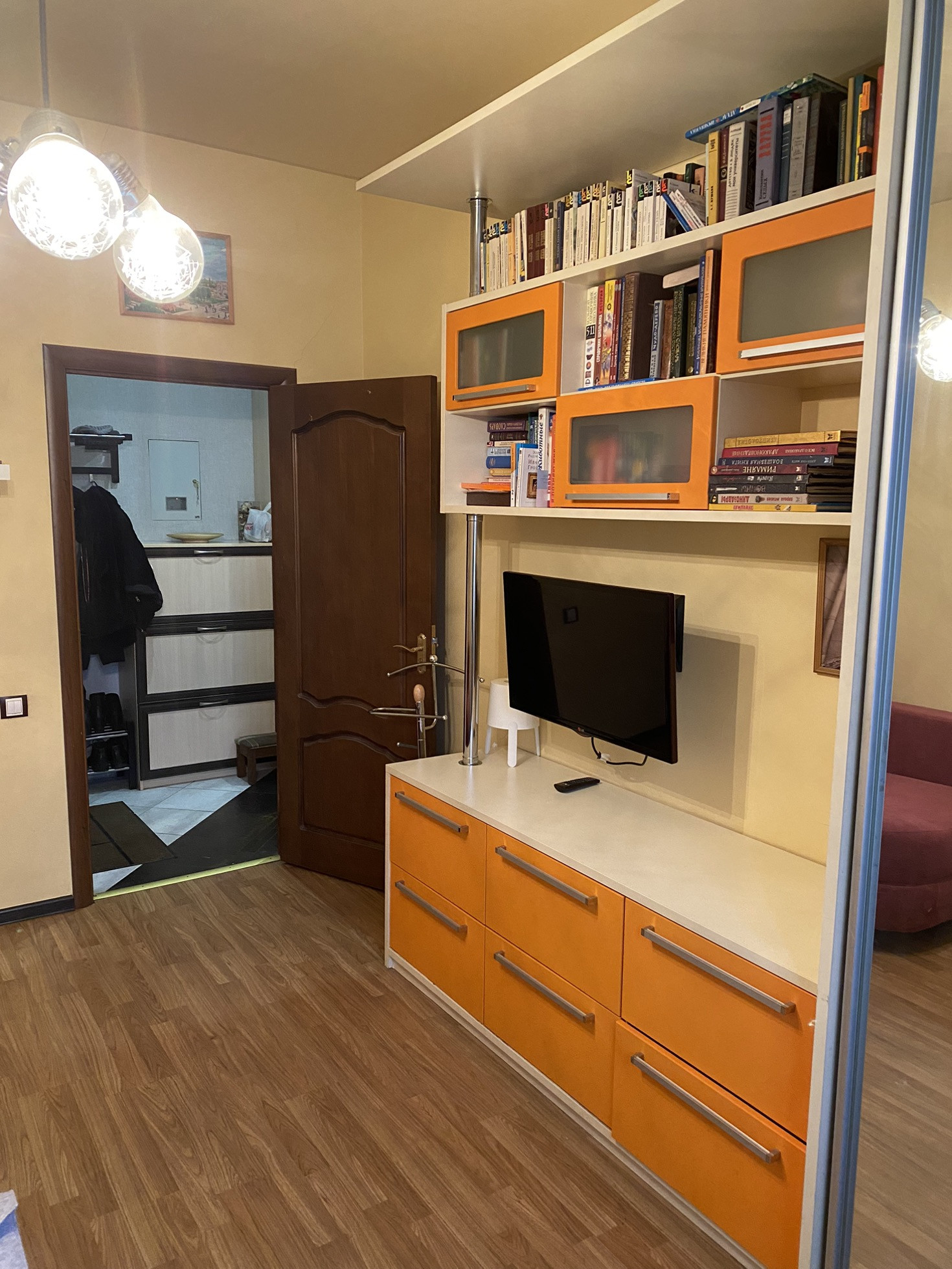 В квартире остается встроенная кухня, шкаф купе в коридоре