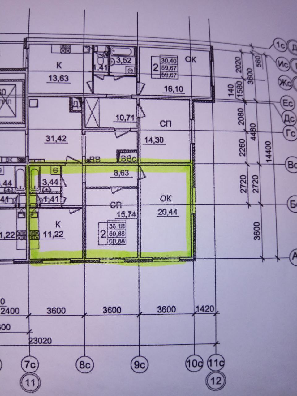 Жилая площадь 36 м2