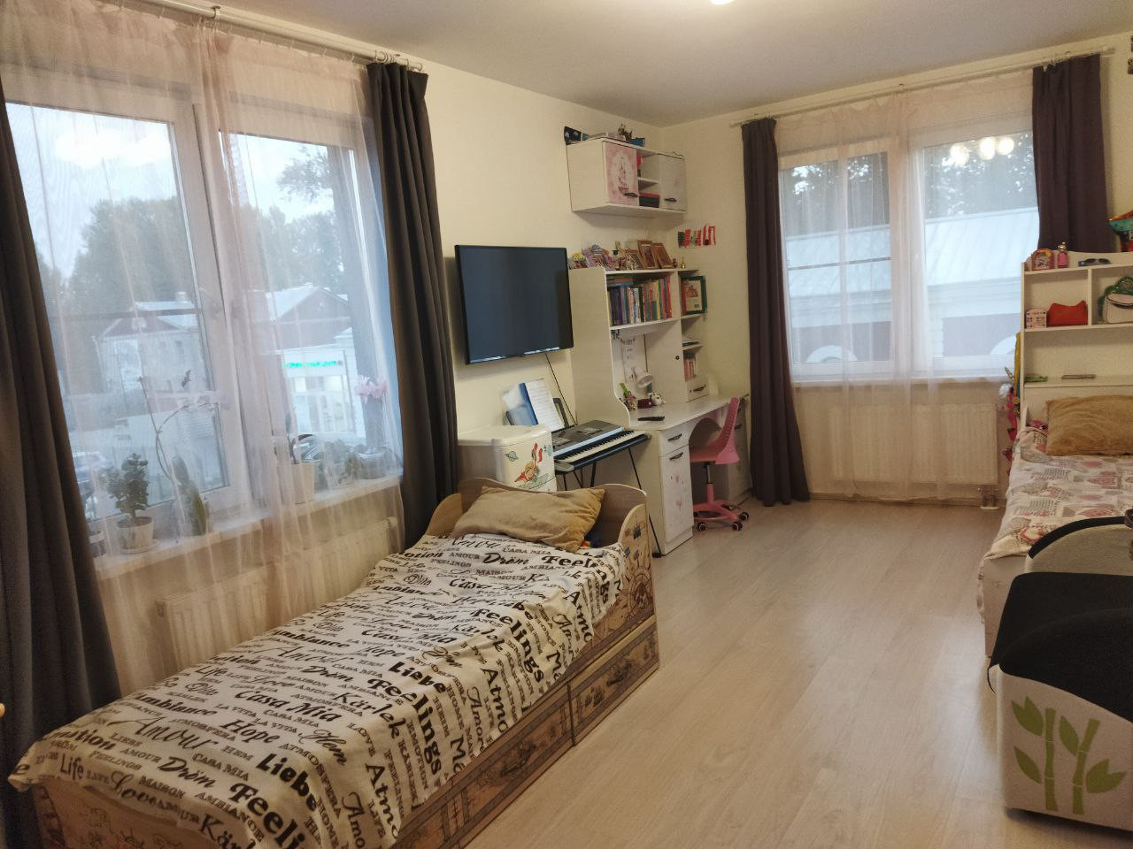 Дом расположен в новом современном квартале в отличной локации. Находится в глубине жилого комплекса. Вид из окон на зеленую зону и армейскую часть.