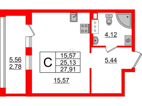 Общая площадь 28 м2