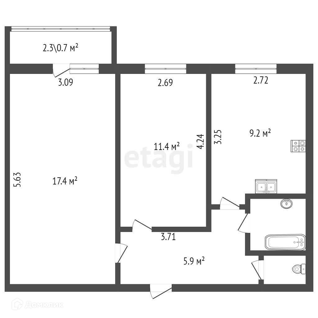 Площадь 46.9 м².