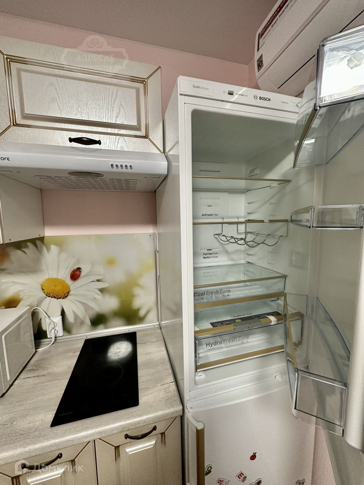 В студии есть все: стиральная машинка, плита, мебель, интернет