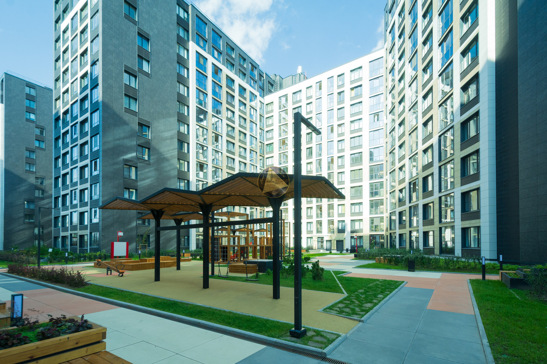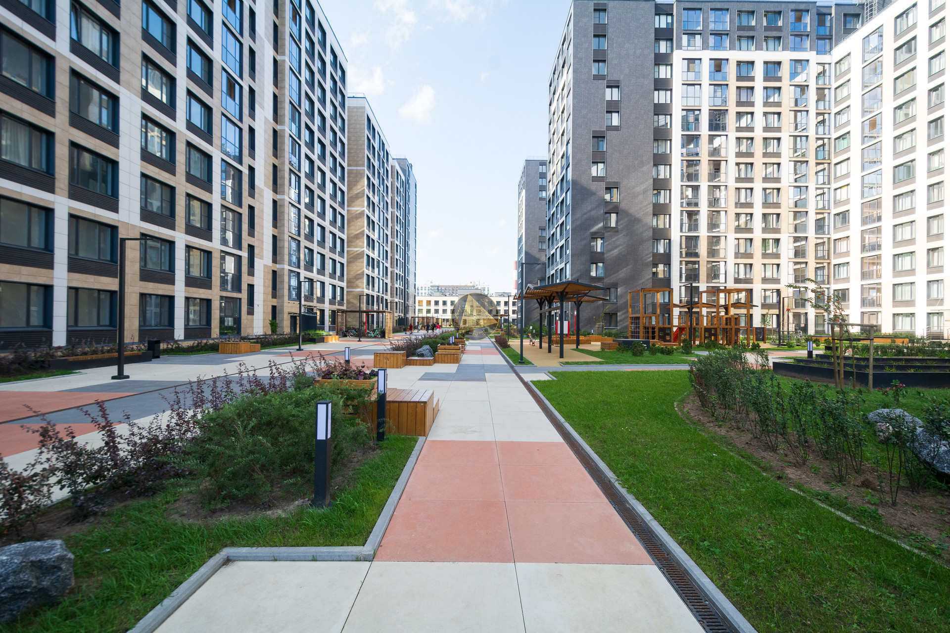 Свежий чистый и уютный двор, продуманный для всех жителей комплекса.