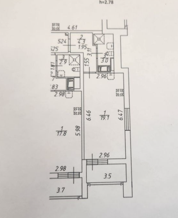 Высота потолков 2,75 метра.