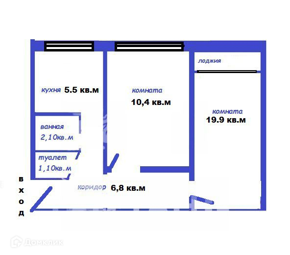 - Из комнаты 19. 9 кв.м выход на лоджию 3.2 кв.м