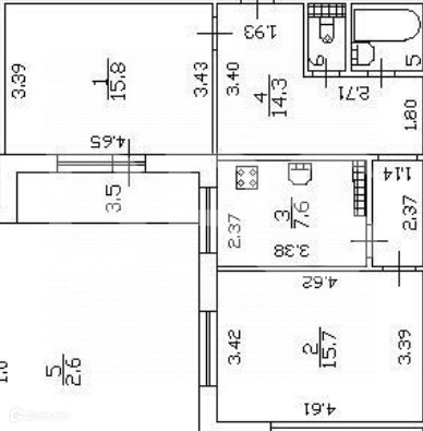 Две большие комнаты (15.7 и 15.8) имеют правильную форму, что даёт Вам возможность расположить все необходимые предметы интерьера по всей площади комнаты.