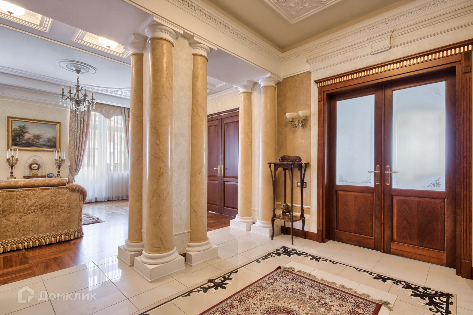 Элитный жилой комплекс всего на 74 квартиры построен 2008 году по индивидуальному проекту. Предлагается просторная квартира площадью 162.7кв.м. с эксклюзивным ремонтом, выдержанным в классическом стиле. Из ее окон открывается шикарный вид на воду и зелень Елагина острова. Высокие потолки 3.3м и большая площадь остекления наполняют пространство воздухом и светом. Планировка включает в себя мастер-спальню со своей ванной комнатой и гардеробной, просторную кухню-столовую, большую гостиную и кабинет. Есть два балкона. Продуманы и организованы места для хранения вещей, есть хозяйственная комната. Для создания этих интерьеров в отделке использовались самые лучшие материалы: итальянский керамогранит, уложенный элегантным орнаментом, наборный паркет из натуральных пород дерева, гипсовый лепной декор потолка и стен по индивидуальным эскизам, венецианская штукатурка, а также мозаика и художественная декоративная роспись стен. Классический интерьер гостиной украшен колоннами и скульптурой. В отделке стен и потолка кабинета использованы роскошные декоративные деревянные панели, украшенные резьбой ручной работы. Квартира обставлена эксклюзивной антикварной мебелью, а также мебелью от знаменитой итальянской мануфактуры Angelo Capellini. Есть вся необходимая бытовая техника (Miele, Liebherr). В ванных комнатах установлена изысканная английская сантехника The Imperial Bathroom company. В квартире установлена современная приточно-вытяжная система воздуха, кондиционирование.