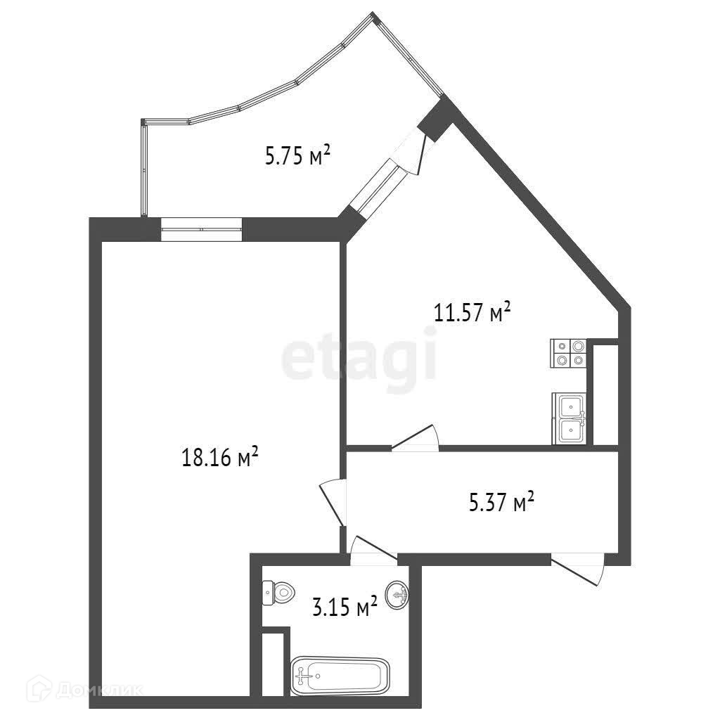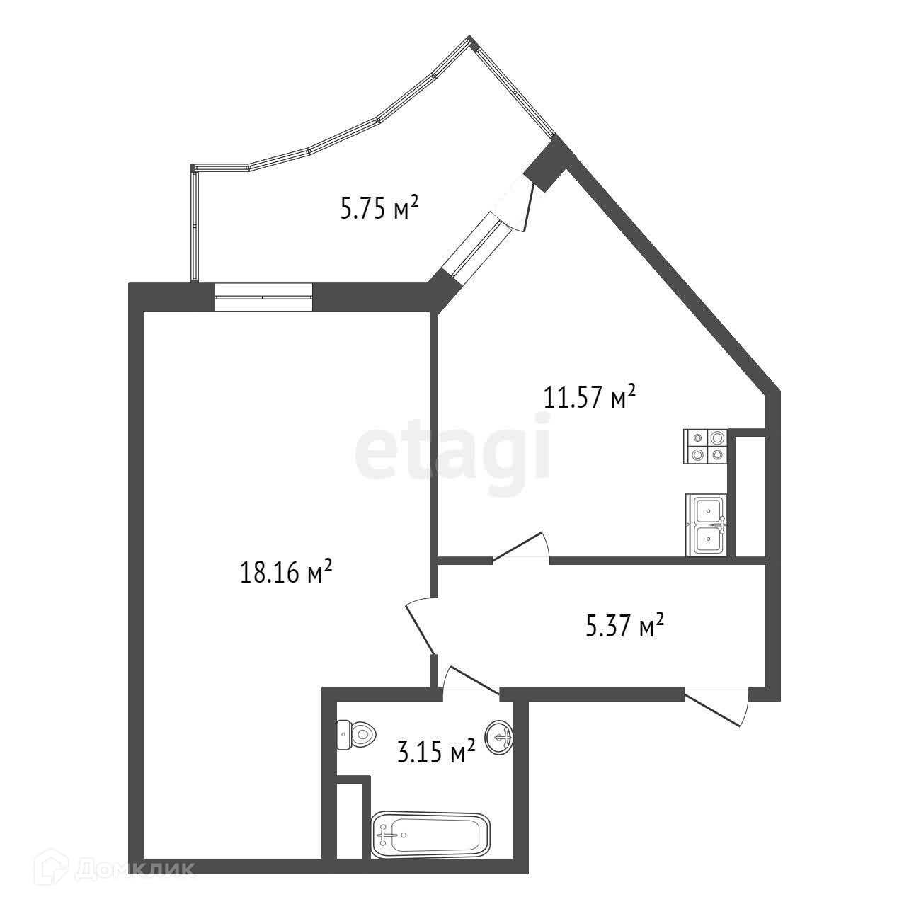Общая площадь 44 м2