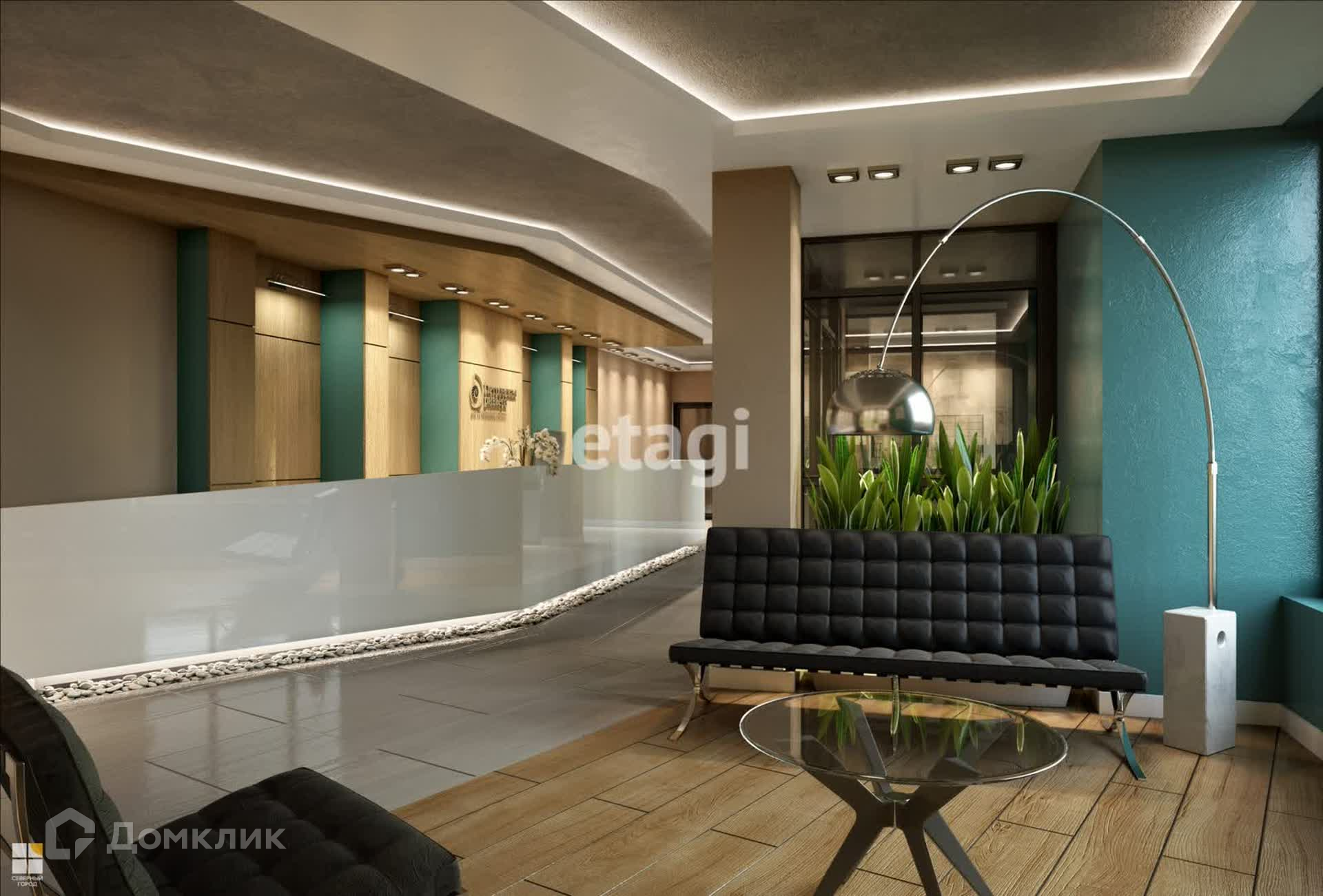Интерьер входных групп оформлен по авторскому проекту, согласно принятой морской концепции. В отделке применено дерево, морская галька и керамогранит. Стойка ресепшен выполнена в форме яхты, устроена лаунж-зона с мягкой мебелью. На подземном уровне размещен отапливаемый паркинг. Спуститься в него можно на малошумном лифте с любого этажа.