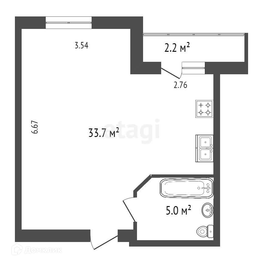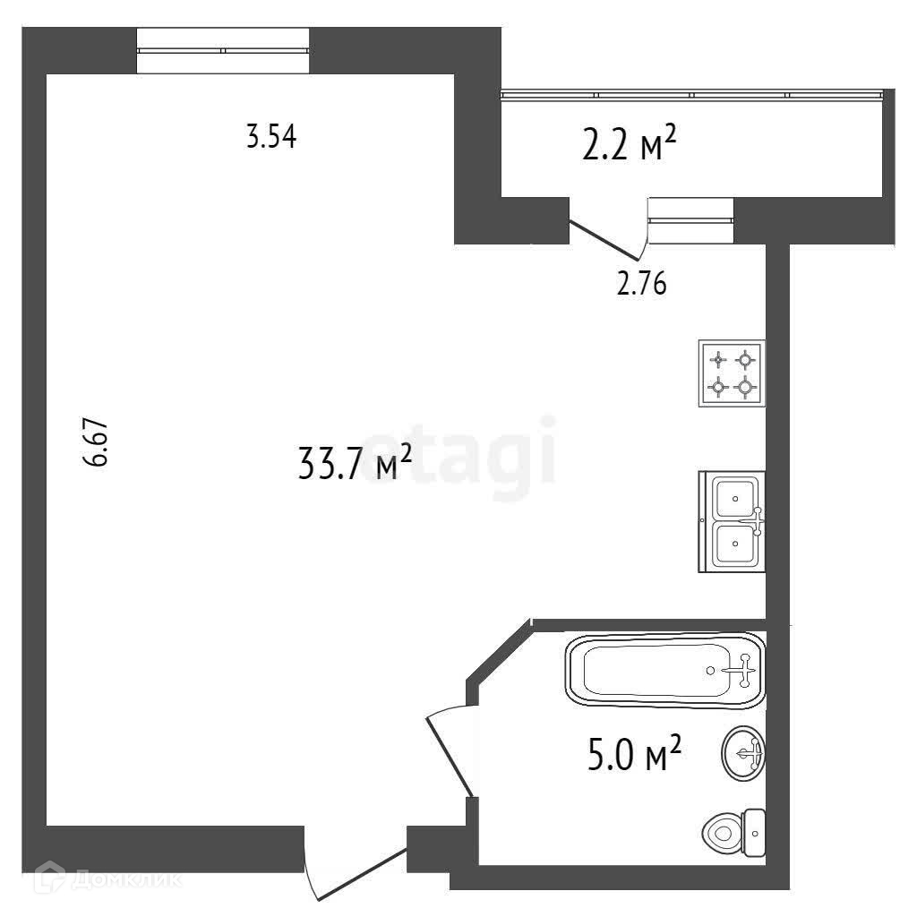 Общая площадь 38.7 м2