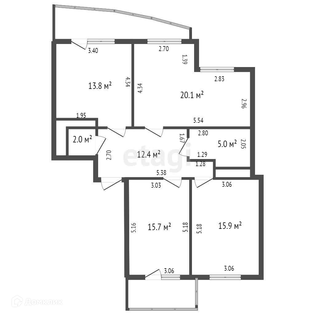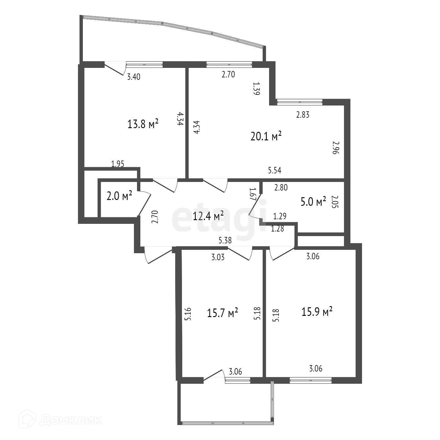 сторона кухня-гостиная 13,8 м2 и спальня 20,1 м2,западная сторона 2 спальни(15,9 м2 и 15,7м2).
