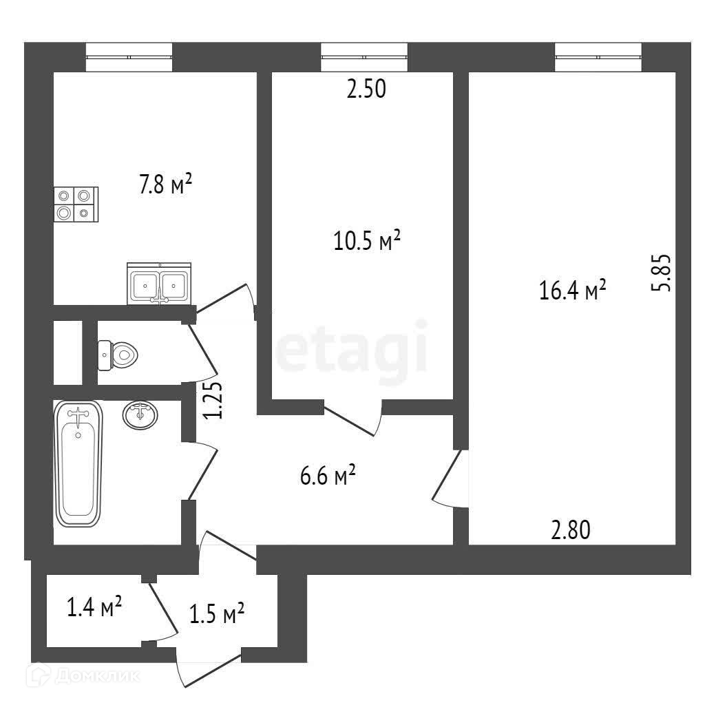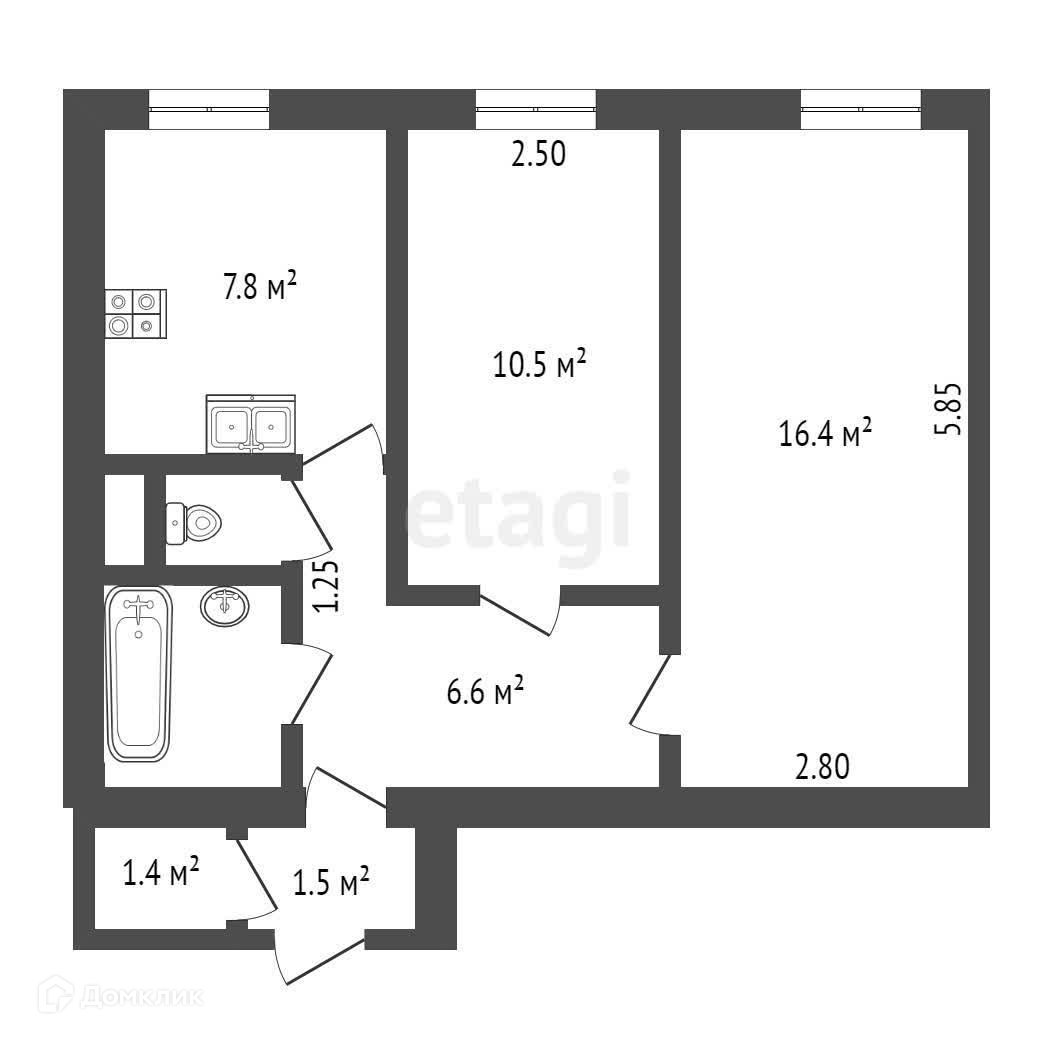 Общая площадь 48.4 м2