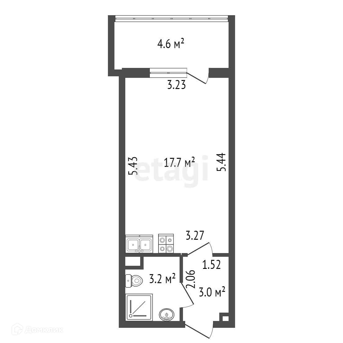 Общая площадь 23.9 м2
