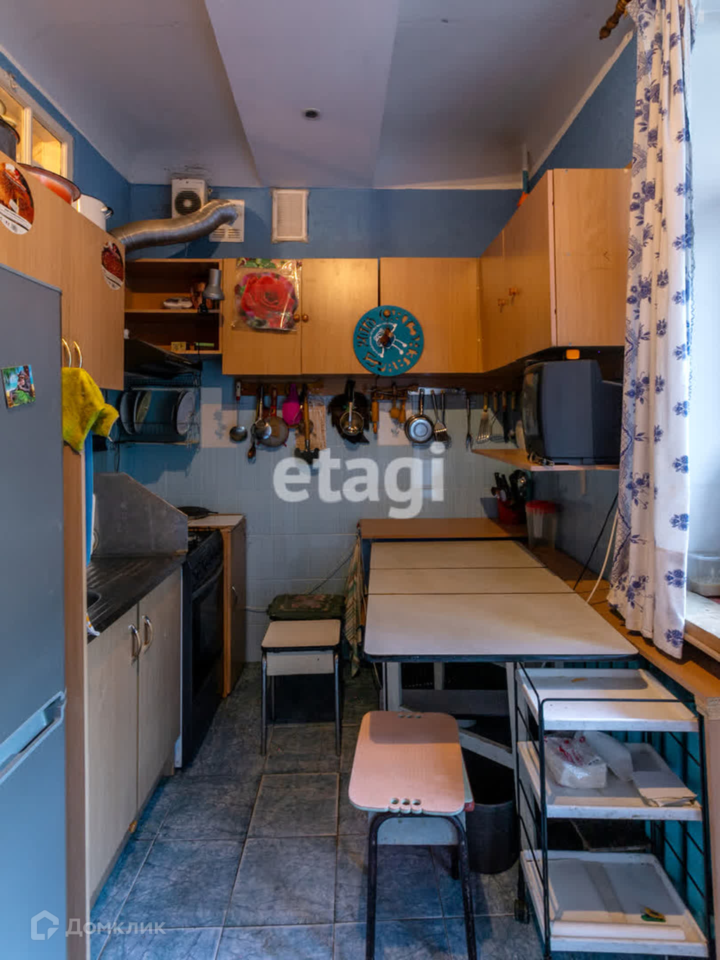 Во дворе тихо и много зелени, всегда есть парковочные места. Окна выходят во двор. Квартира на втором этаже пятиэтажного кирпичного дома 1958 года постройки. Стены толстые, в квартире тепло. Высота потолков 3 метра. Площадь кухни 10 квадратных метров. Остается вся мебель, два холодильника, газовая плита,вытяжка, микроволновка, стиральная машина. Санузел совмещенный, где установлена газовая колонка, что экономит расходы на горячую воду. Балкон застеклен. Продается в связи с переездом в другой город.