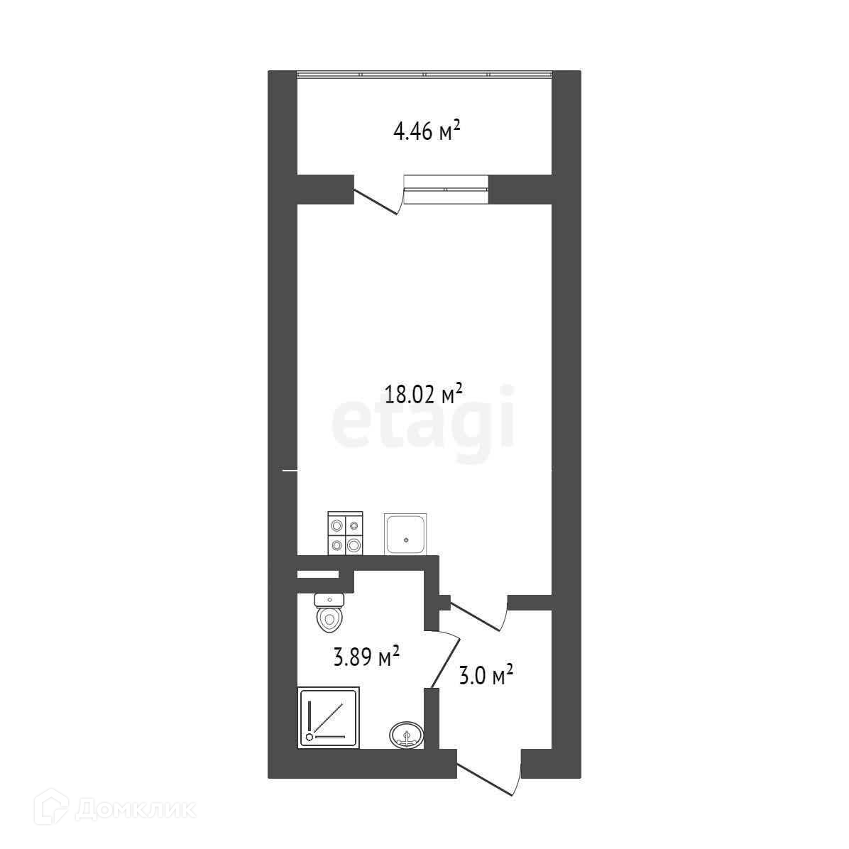 Удобная планировка - просторная и светлая 18-метровая комната с большим застекленным балконом (4,5 кв.м), есть ниша под шкаф в прихожей и место для стиральной машины в санузле (почти 4 кв.м).