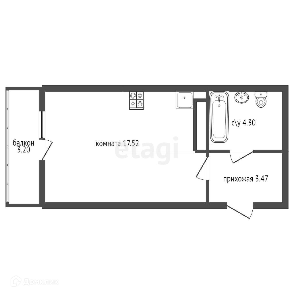 Общая площадь 24.3 м2